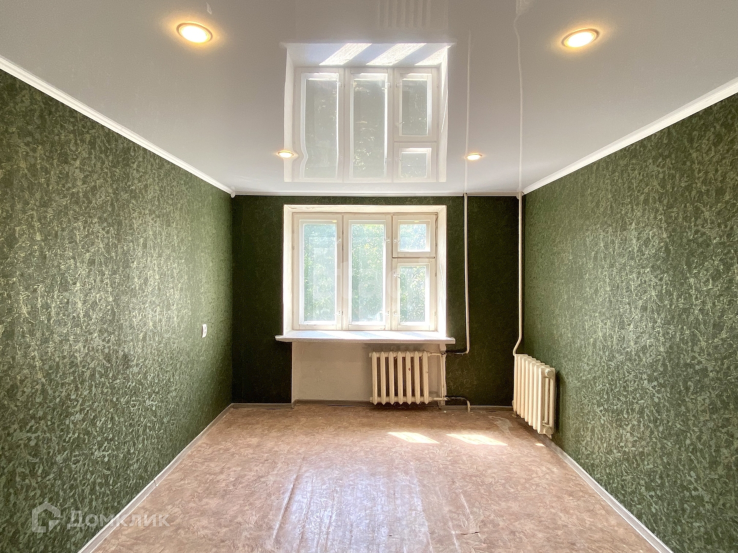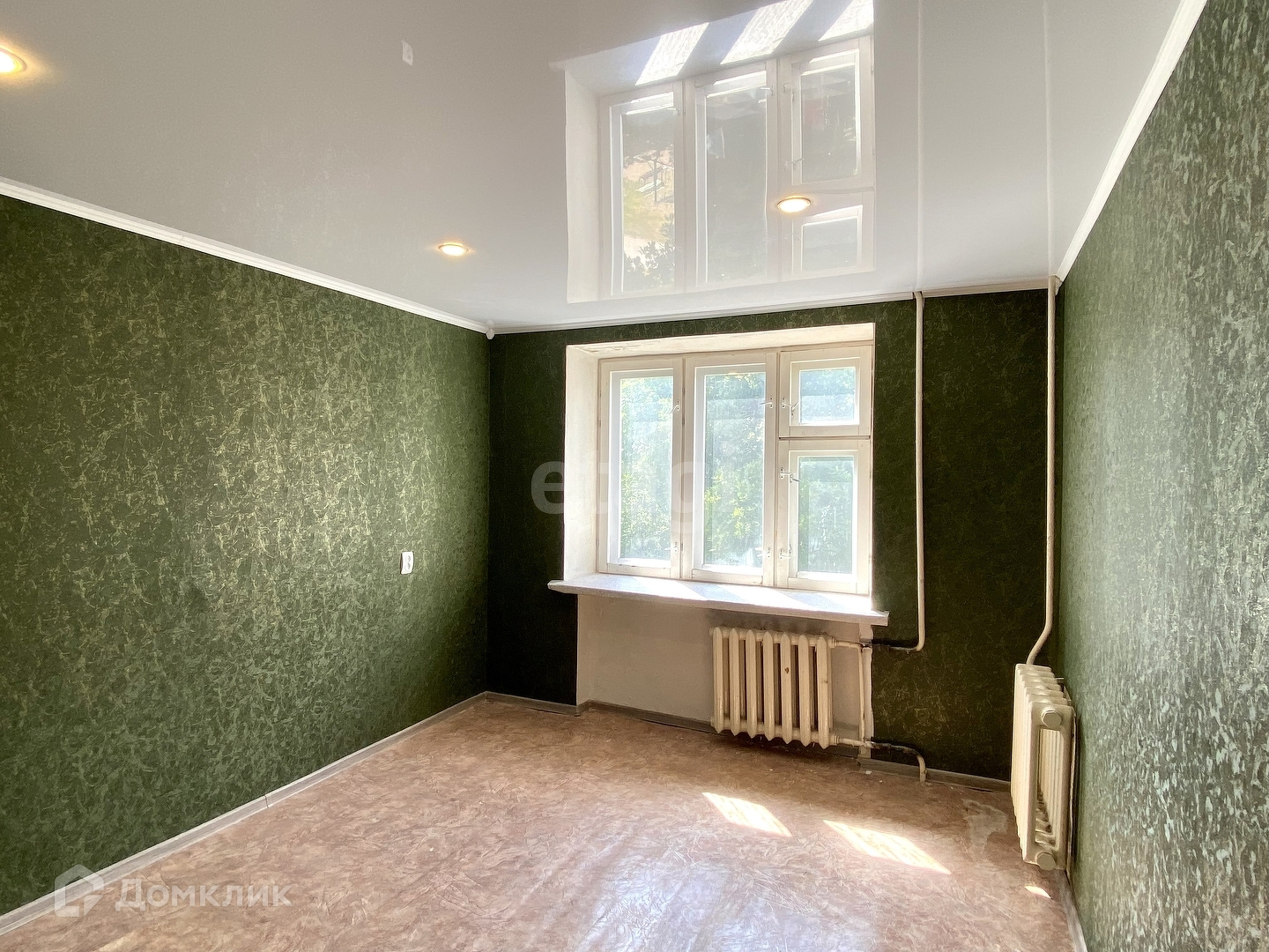 Ремонт хороший! Наклеены качественные новые обои, потолки натяжные. Окна качественные, деревянные. В комнате зимой очень тепло, окна хорошо удерживают тепло, к тому же в комнате две батареи по 7 секций. Электрика полностью заменена. Имеется вывод сантехники для умывальника, стиральной машинки. При желании можно установить душевую кабину.