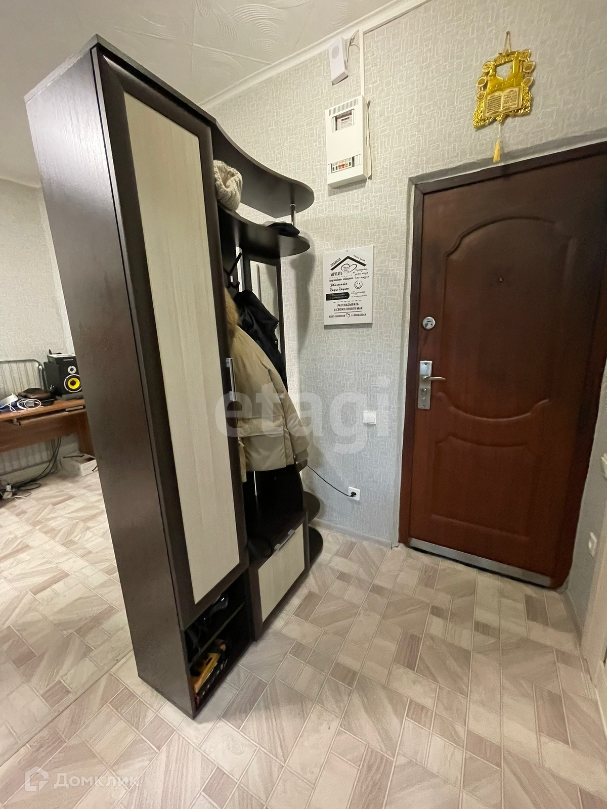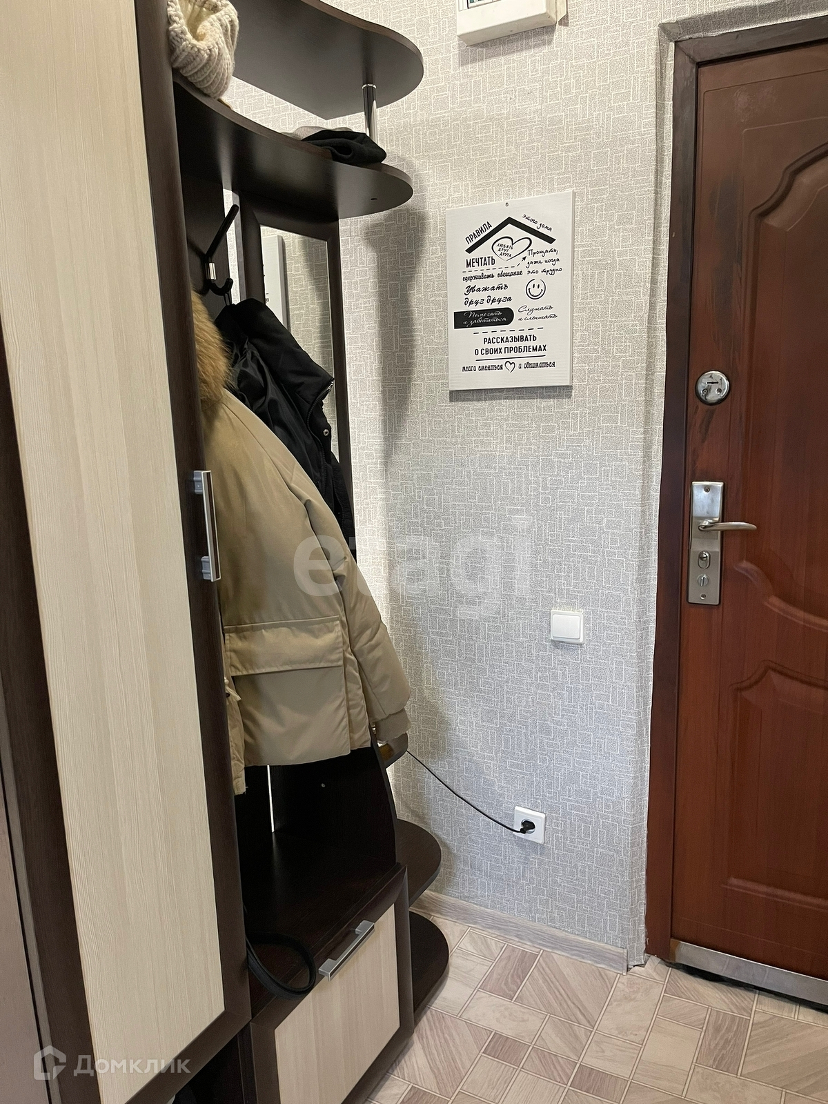 Новым хозяевам в подарок остаётся кухонный гарнитур и шкаф в прихожей.
