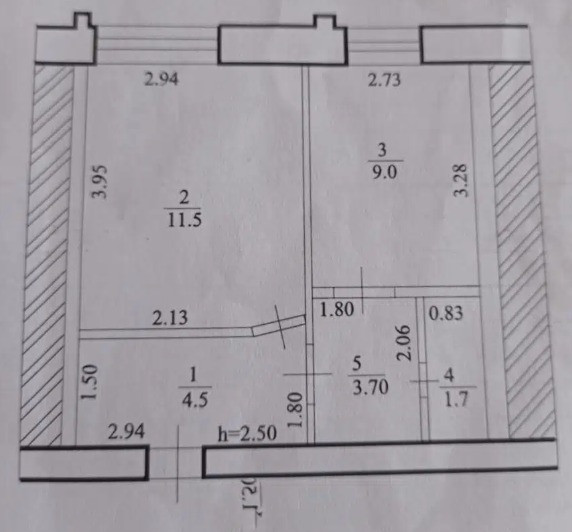 Площадь кухни 3.7 м2