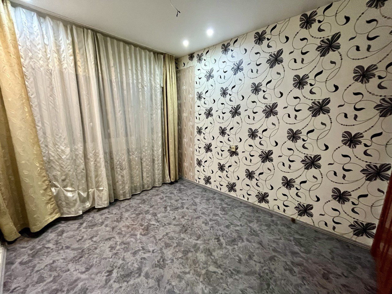 - В спальных комнатах натяжные потолки, точечные светильники, окна пластиковые, балкон застеклен.
