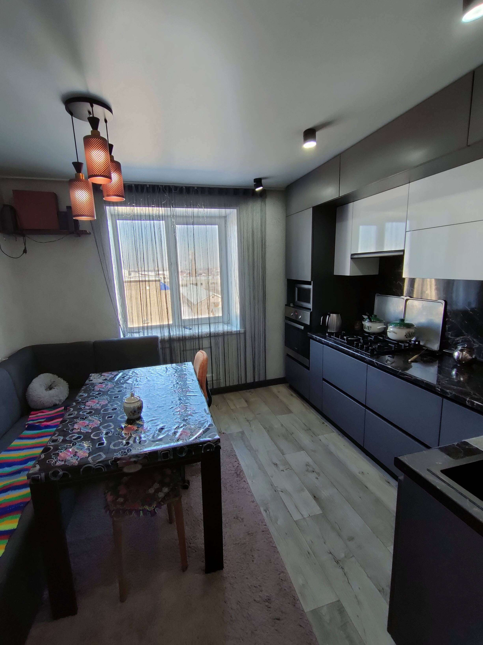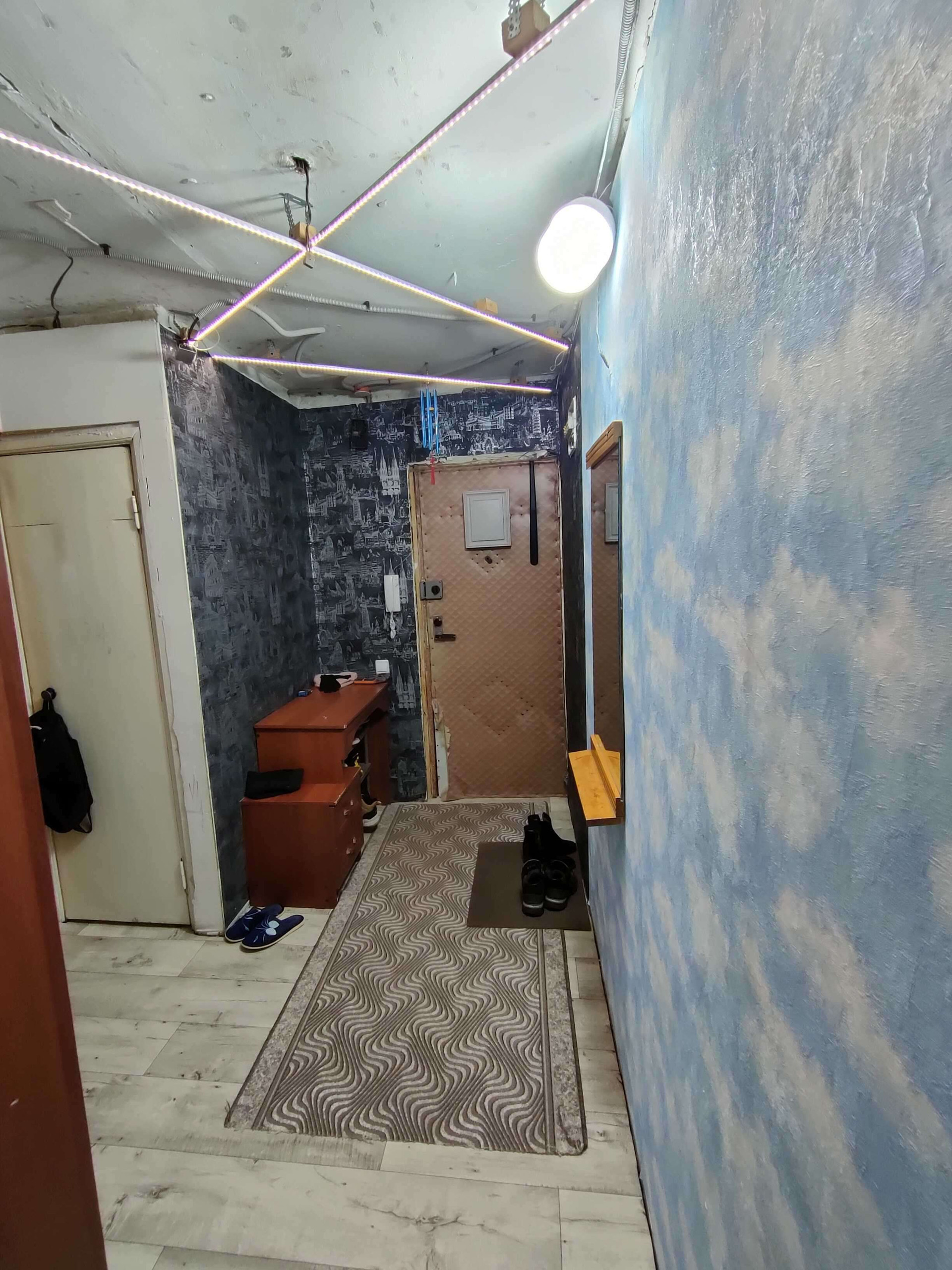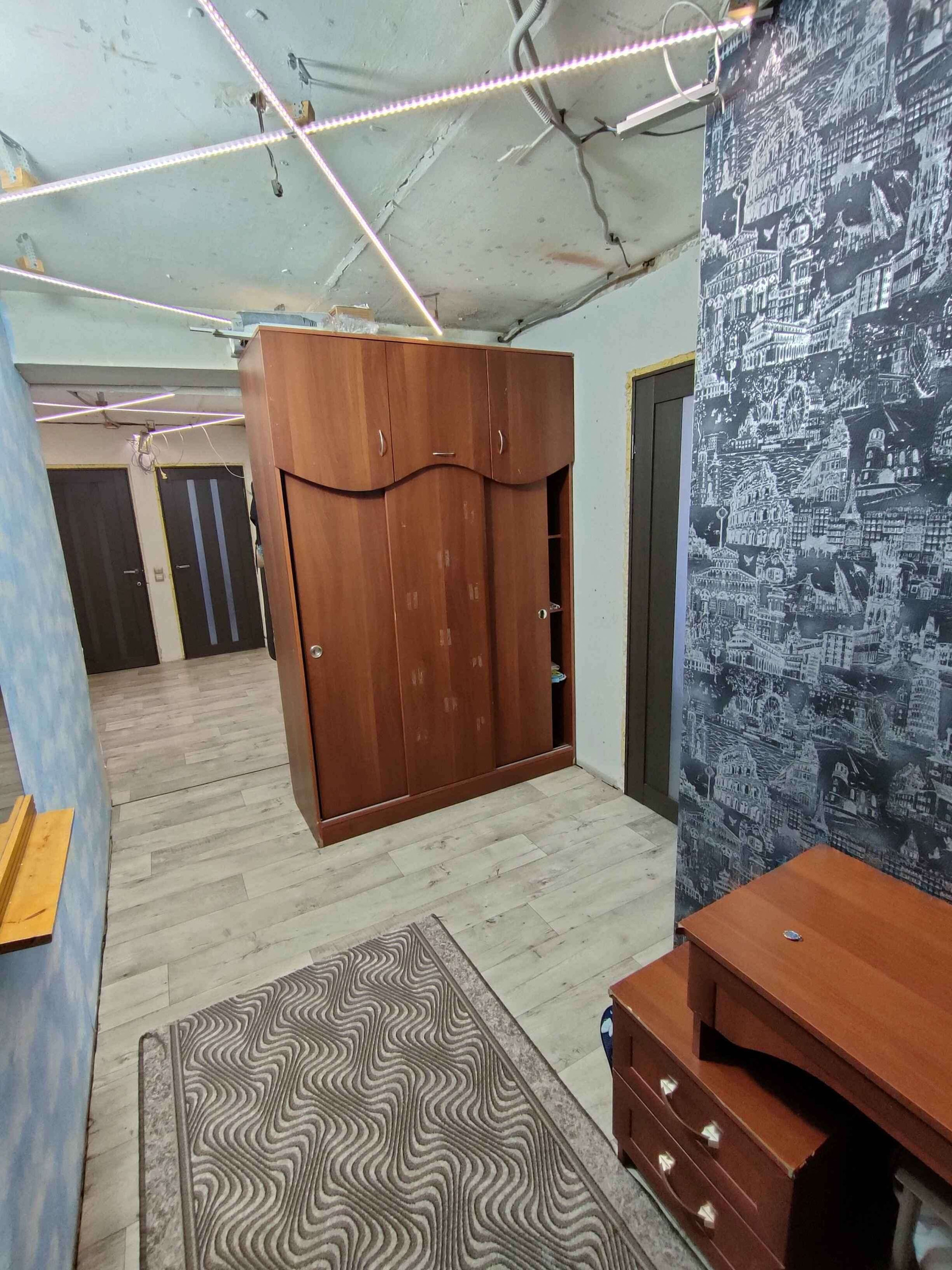 В квартире сделан частично ремонт,пластиковые окна везде,кроме зала, натяжные потолки тоже частично.