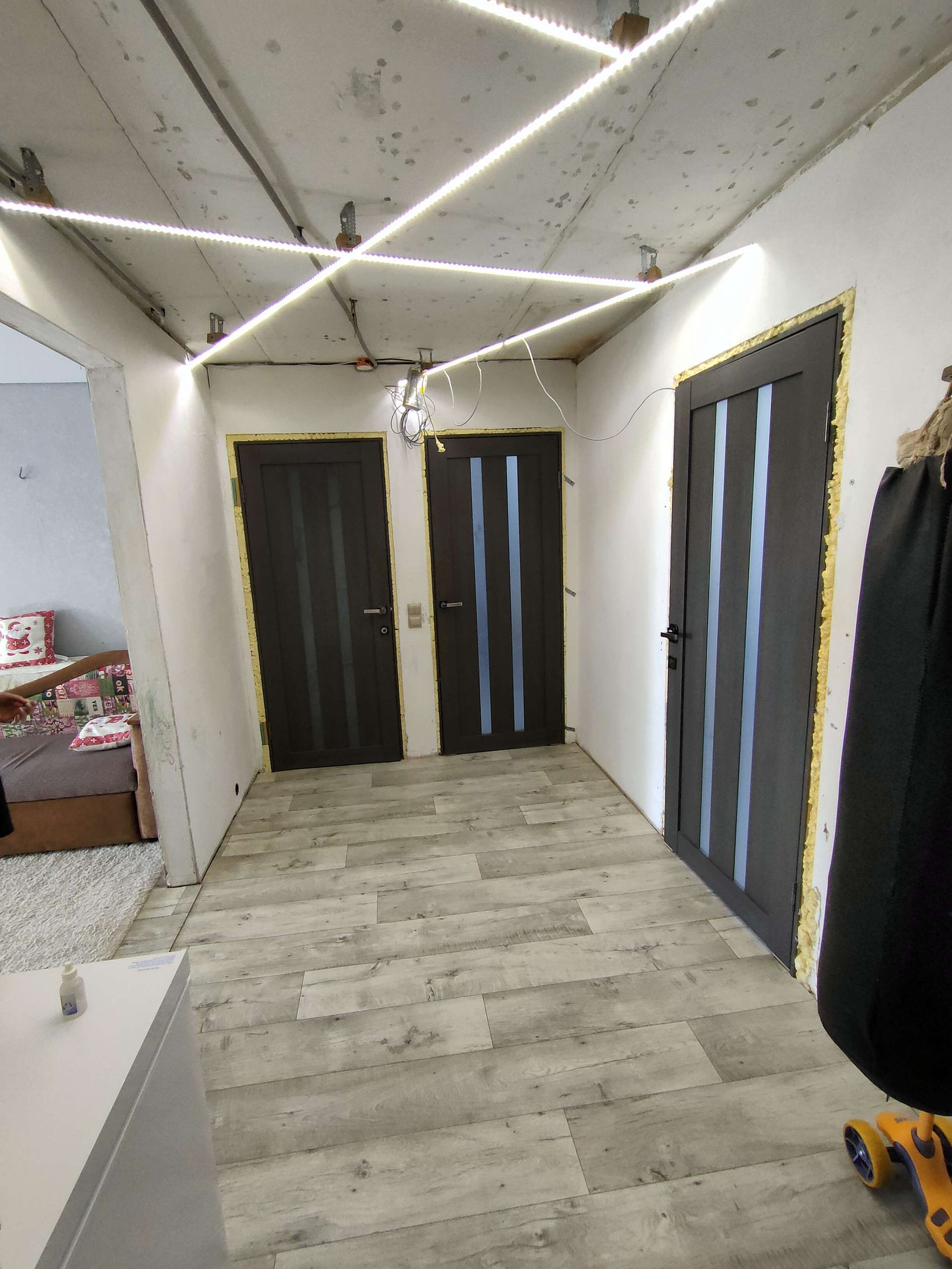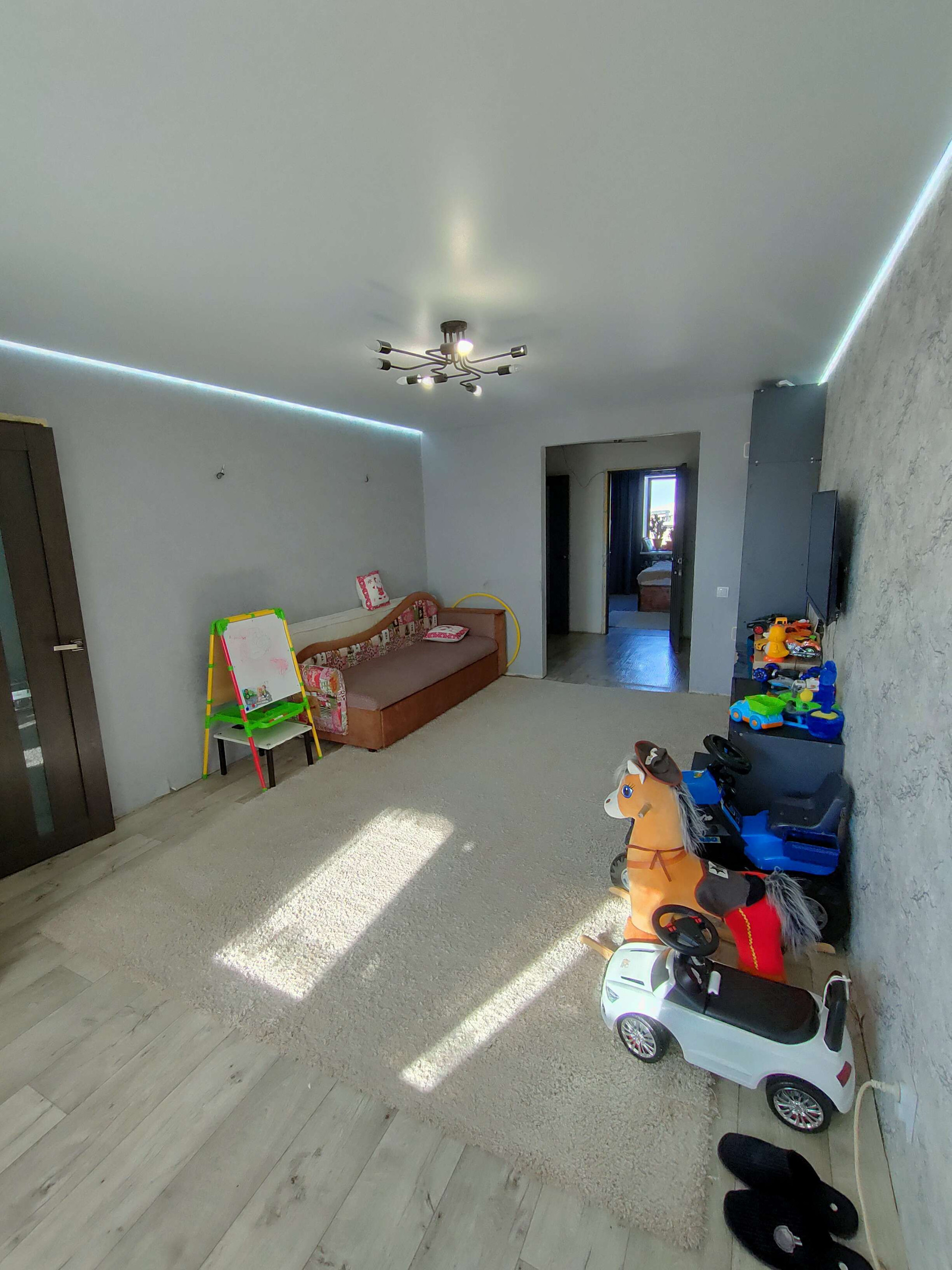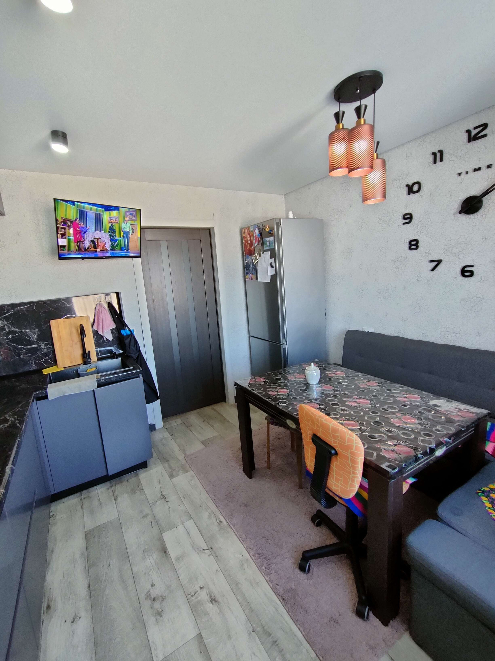 В квартире сделан частично ремонт,пластиковые окна везде,кроме зала, натяжные потолки тоже частично.