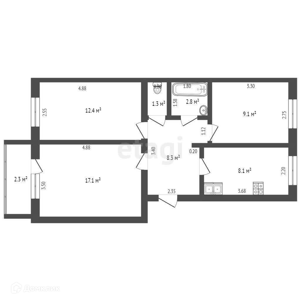 Общая площадь 67 м2