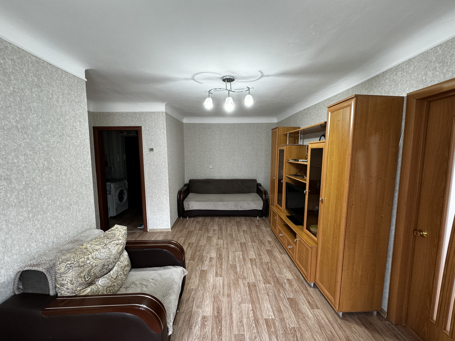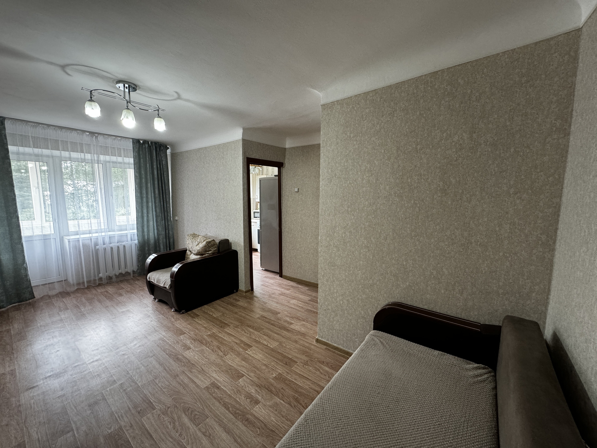В квартире пластиковые окна, натяжные потолки, санузел в кафеле, на полу - отличный линолеум, балкон застеклен пластиковыми окнами, соседи тихие.