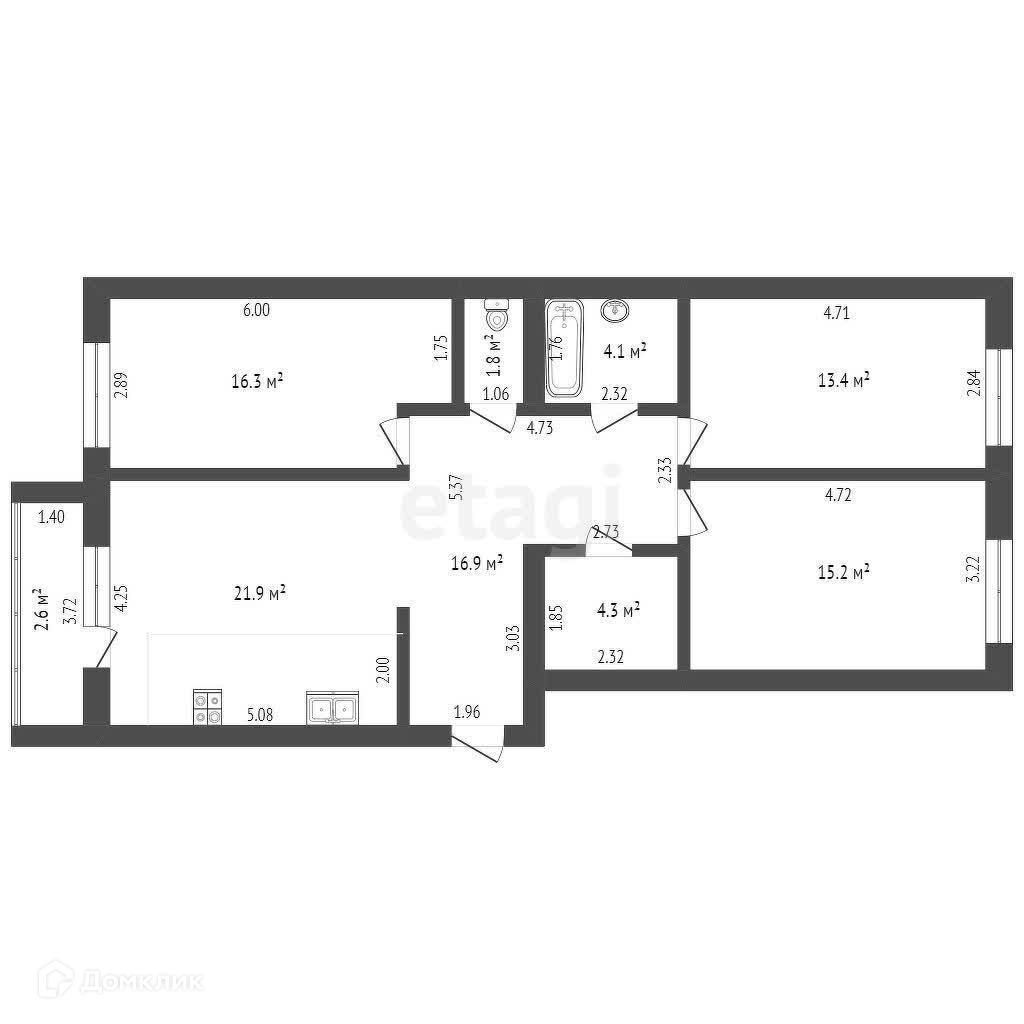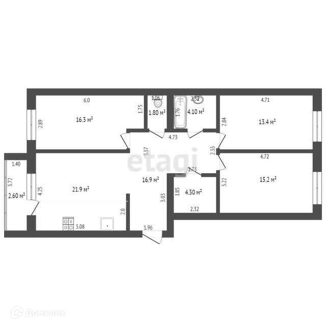 Балкон, лоджия 1 балкон