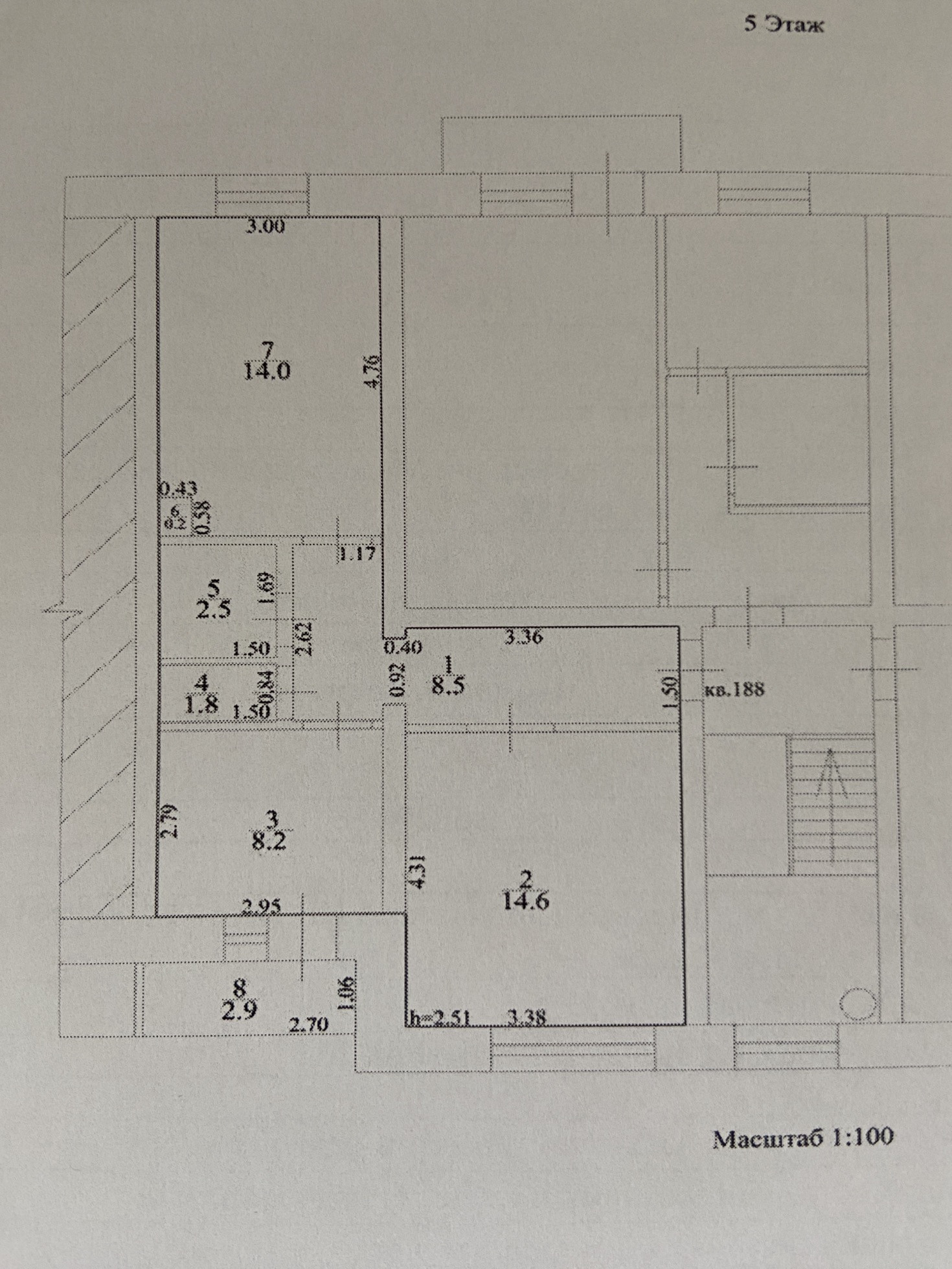 Высота потолков 2.51 м
