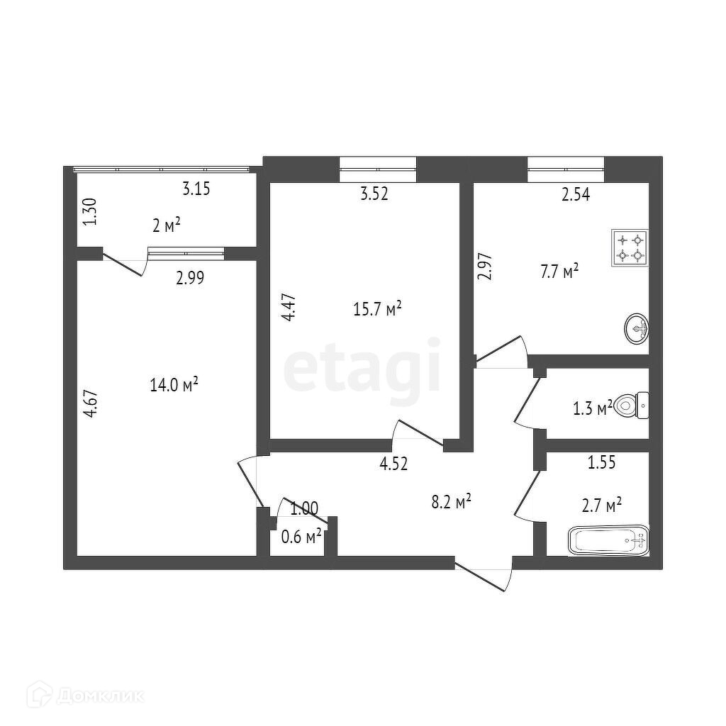 Общая площадь 50.1 м2