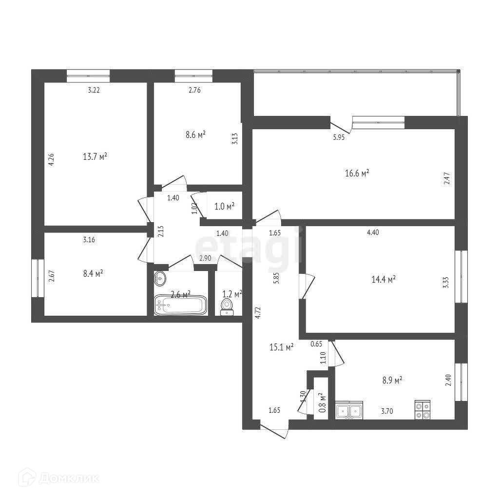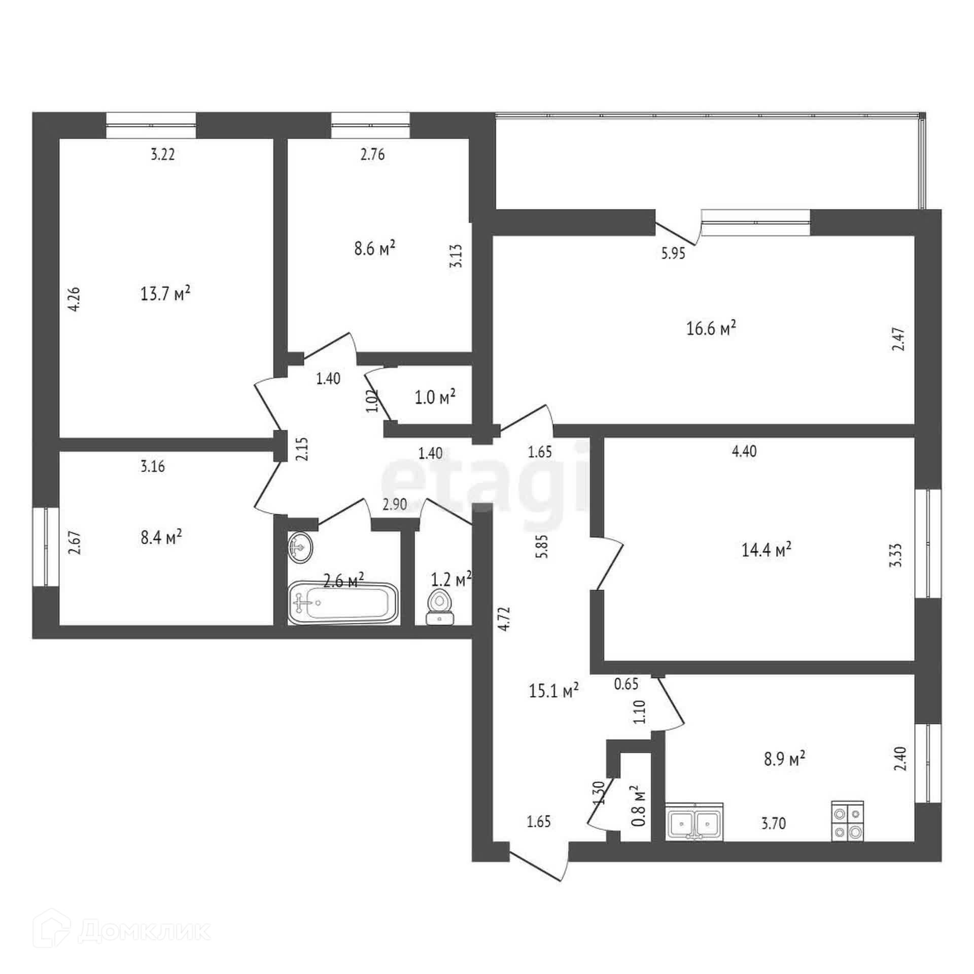 Общая площадь 91.4 м2