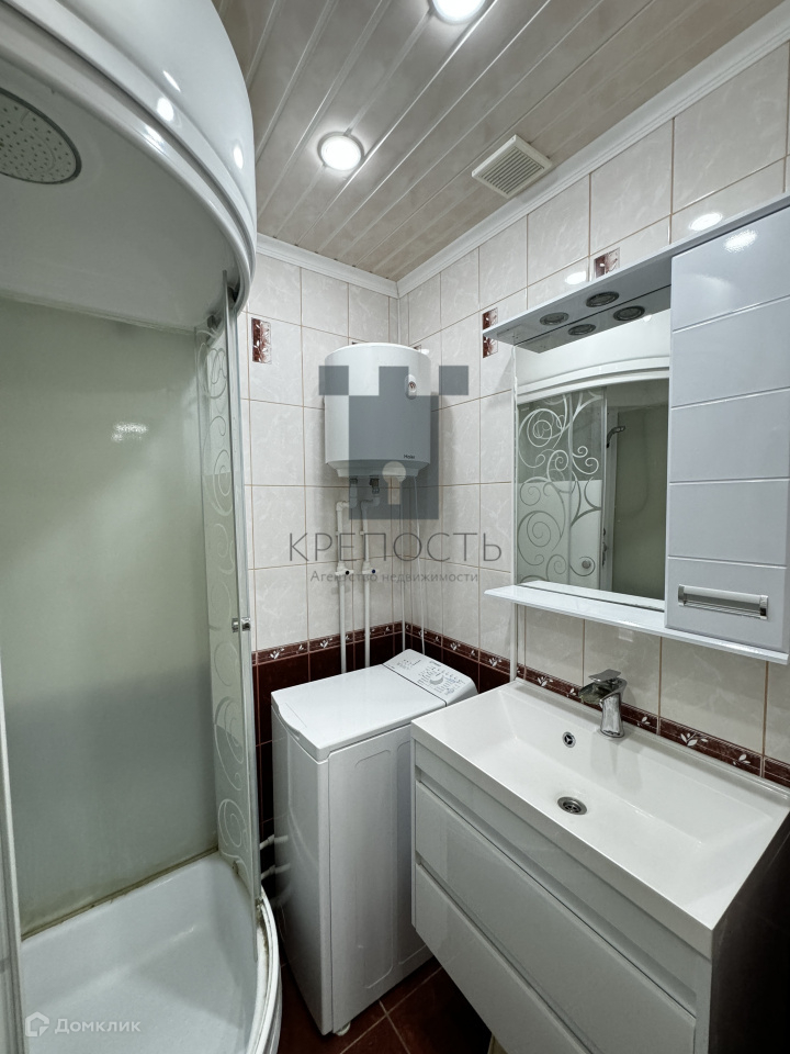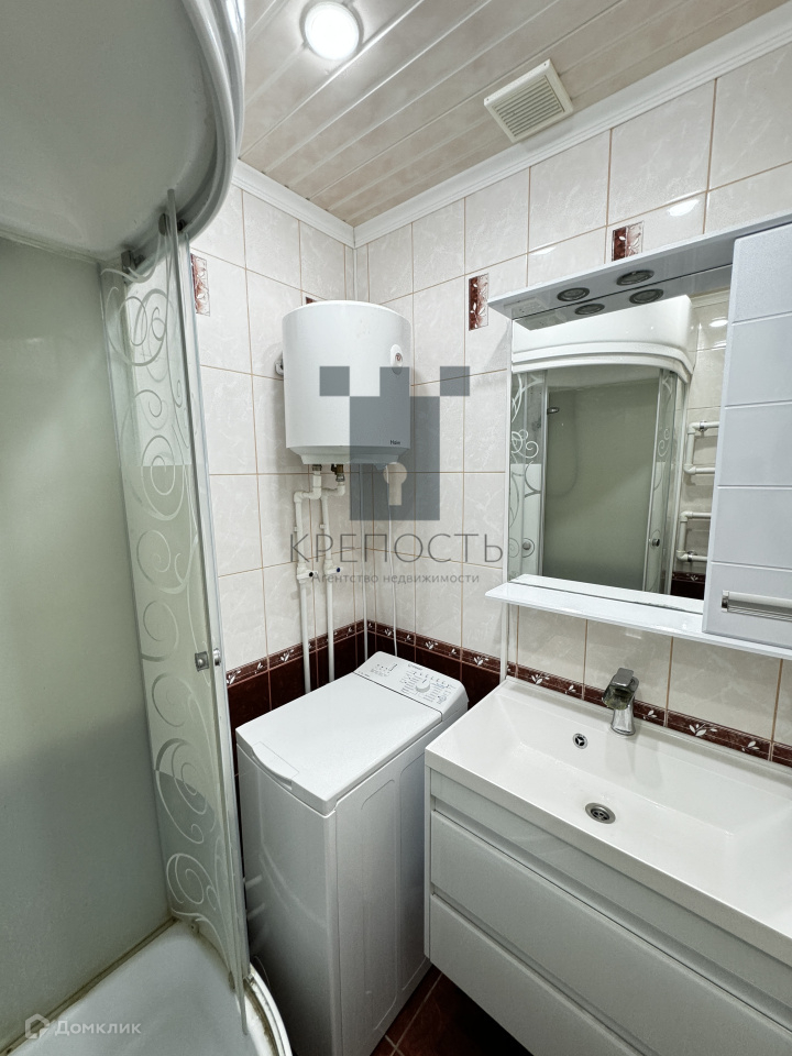 - В санузле остается всё: стиральная машина, электрический водонагреватель, подвесная качественная раковина, подвесное зеркало с подсветкой, душевая кабина.
