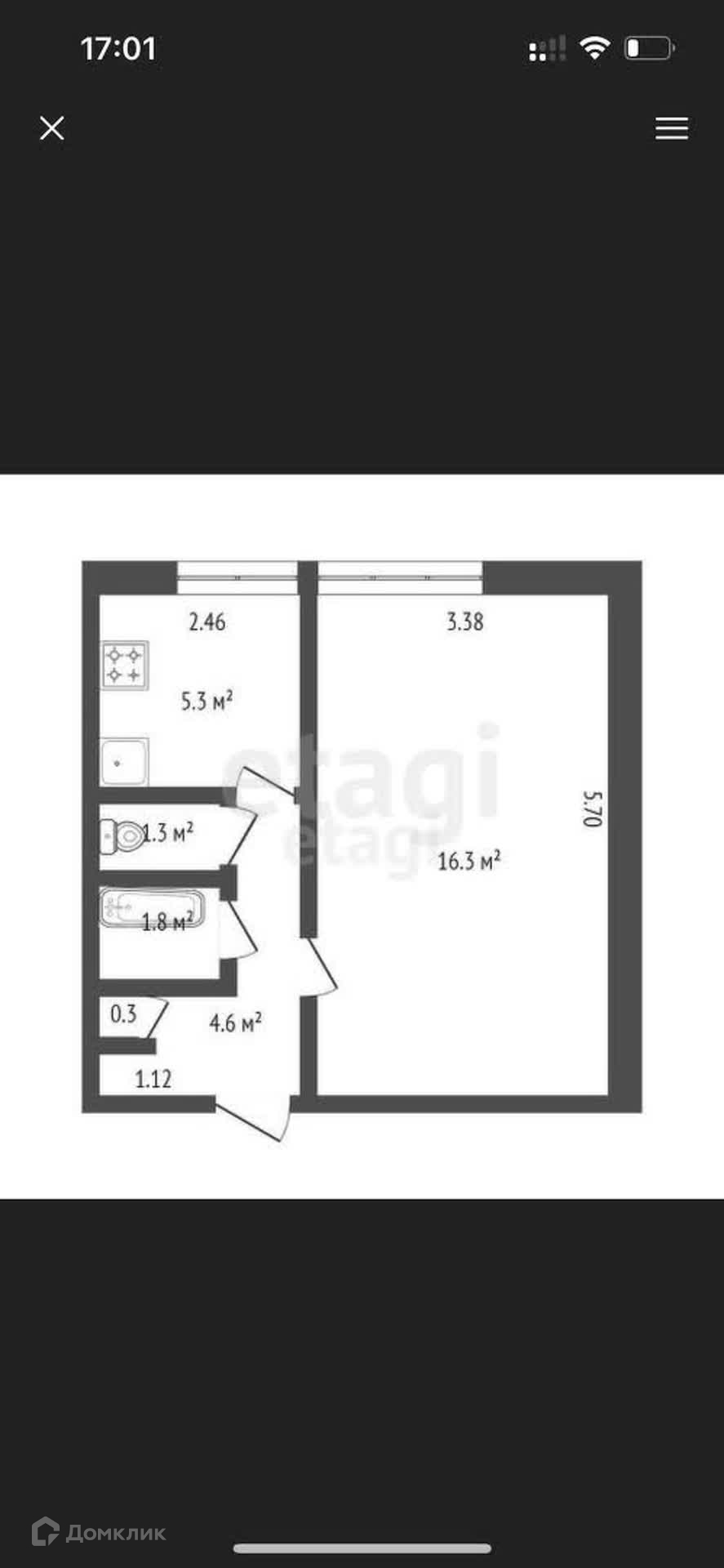 Общая площадь 37.6 м2