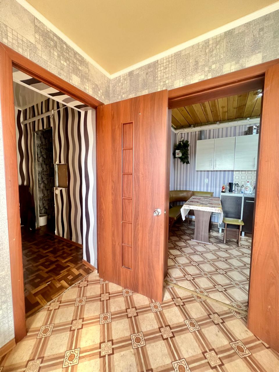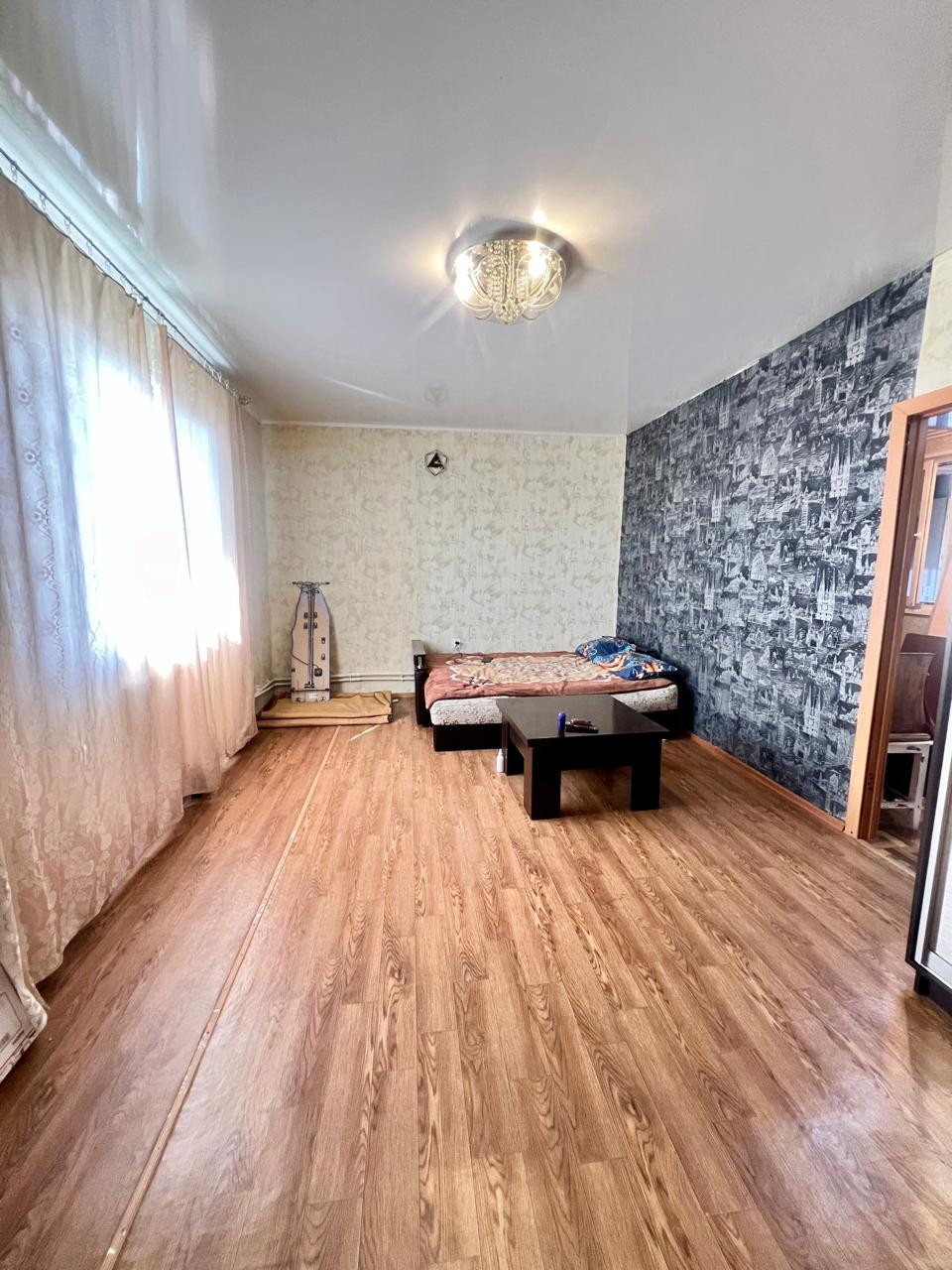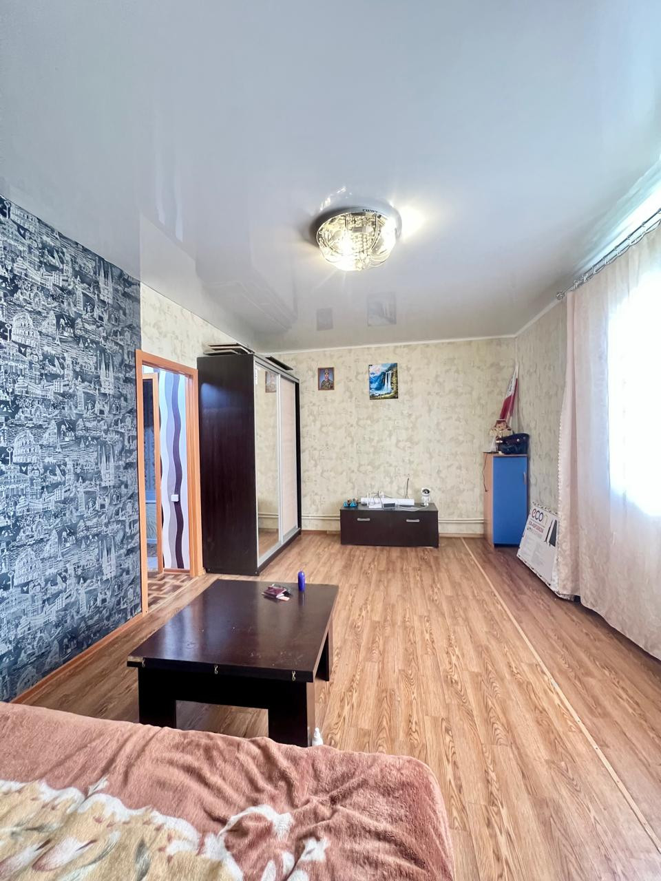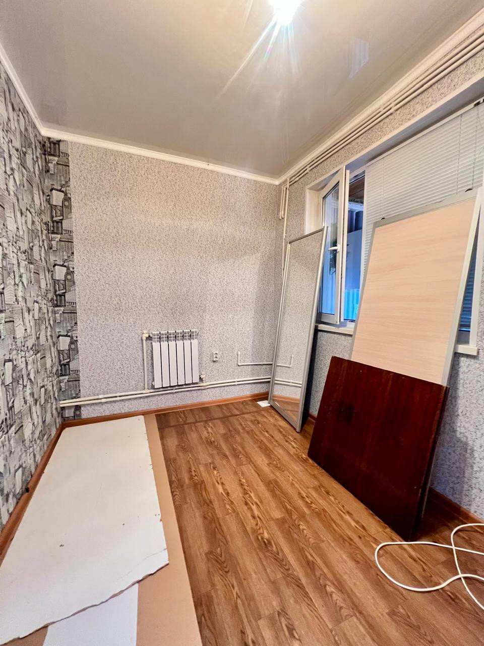 Санузел совмещенный. В квартире выполнен косметический ремонт. Новоселам остается кухонный гарнитур.