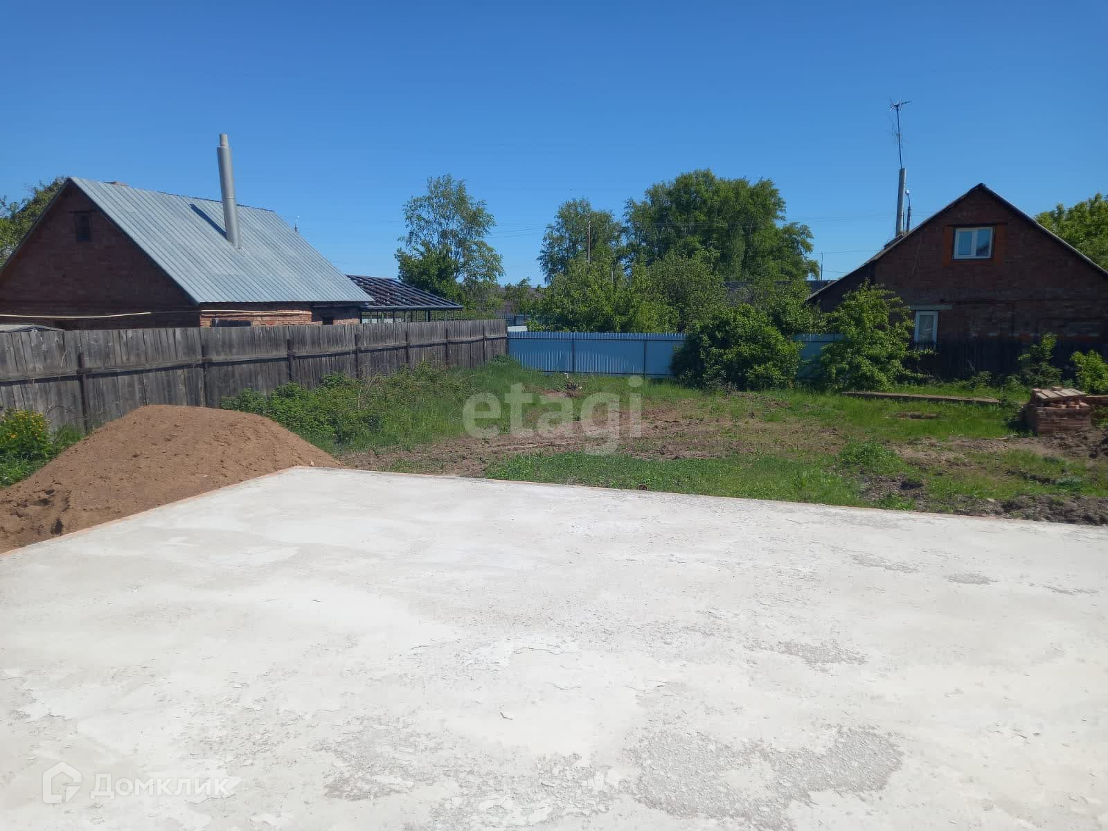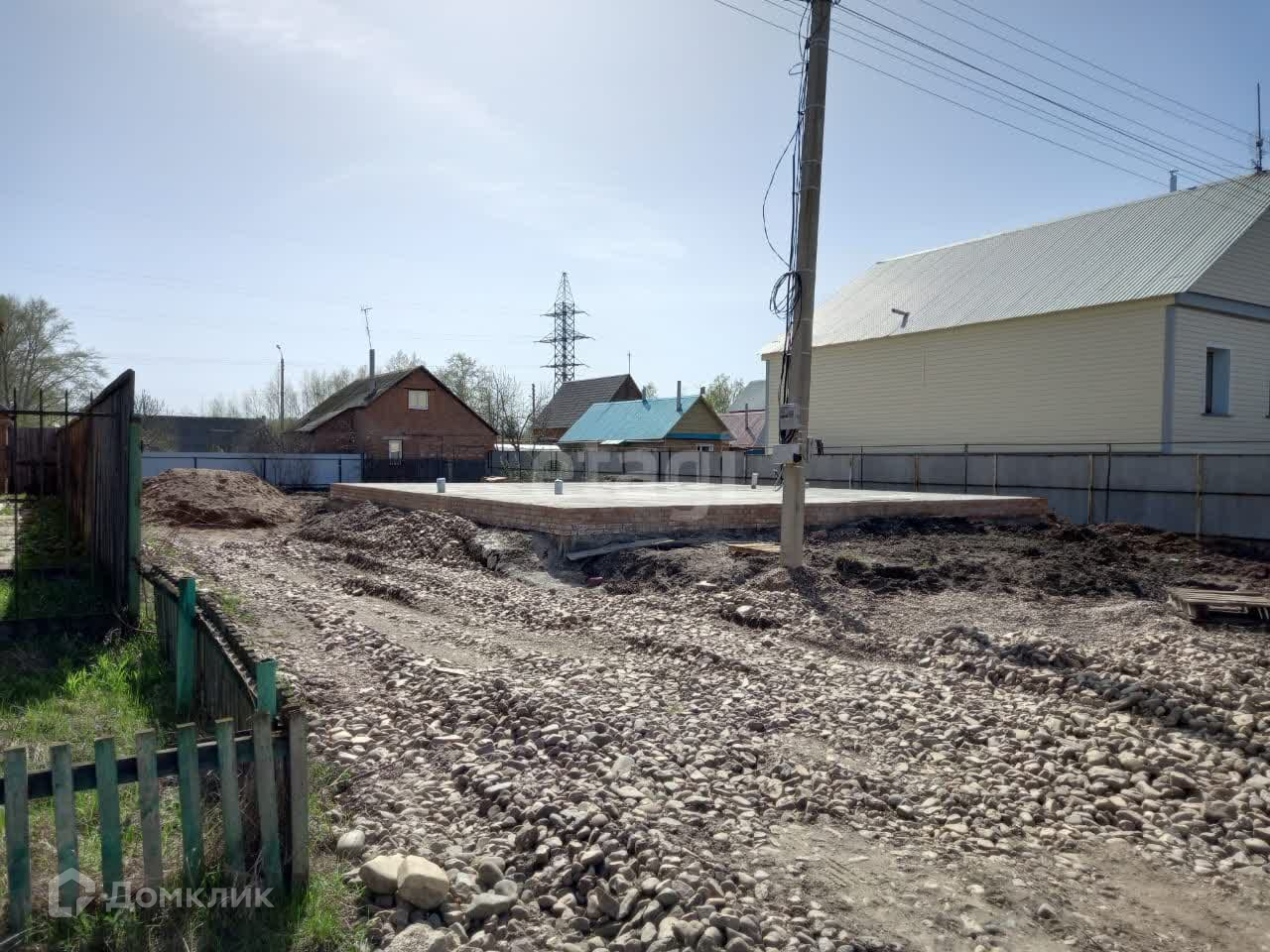 На участке имеется готовый фундамент размером 9*12. Подведен свет, центральная вода и выведена канализация. Участок огорожен с трех сторон забором из профнастила.