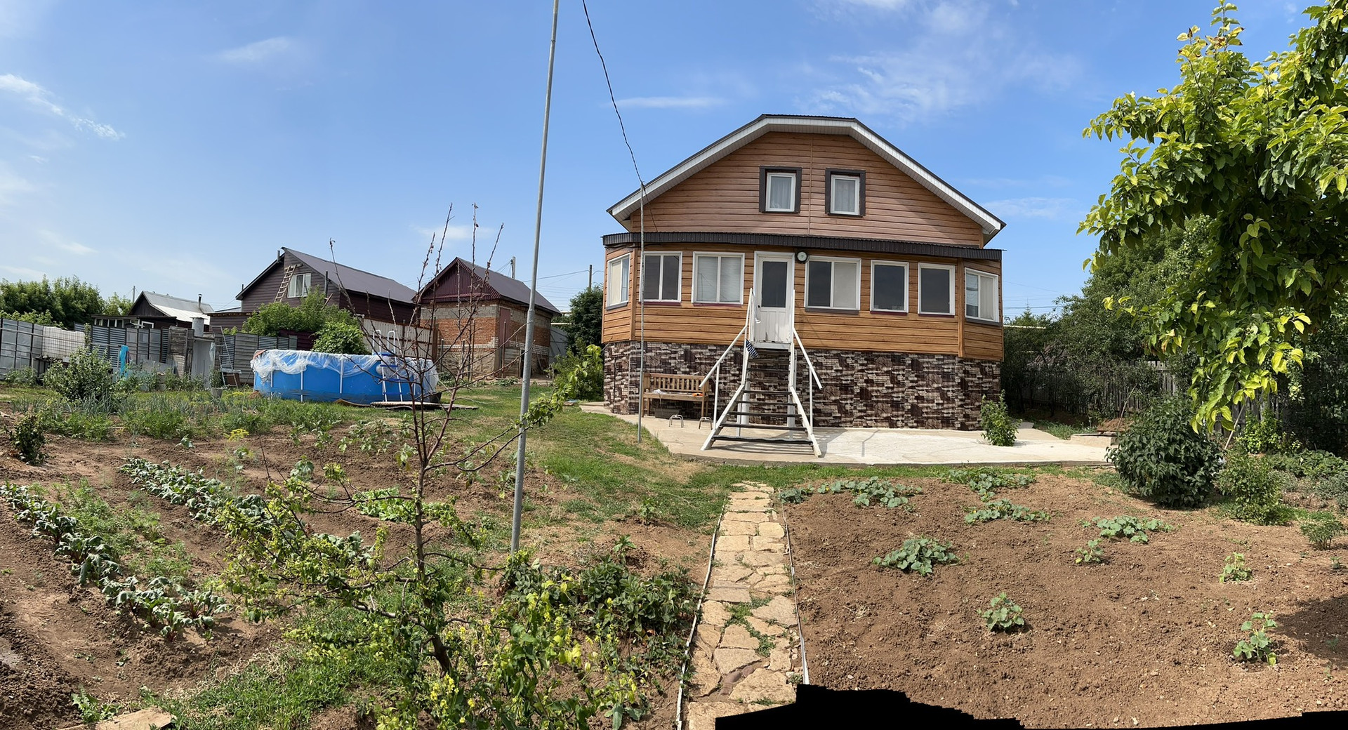 Есть капитальная построенная  2 года назад баня, с теплым полом и отдельной парильной. Беседка из металлосайдинга с мангальной зоной и шикарным видом