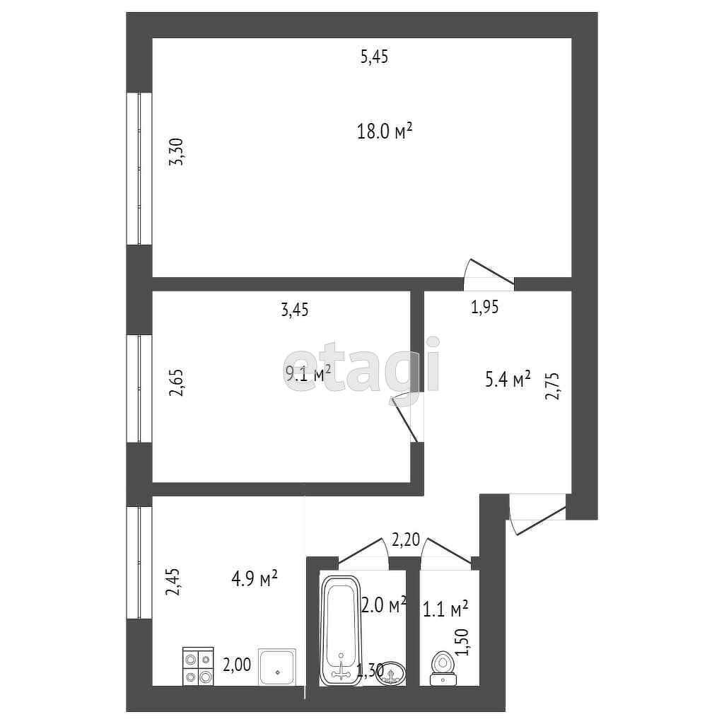 Продается 2-комнатная квартира в отличном состоянии площадью 42.4 кв.м.