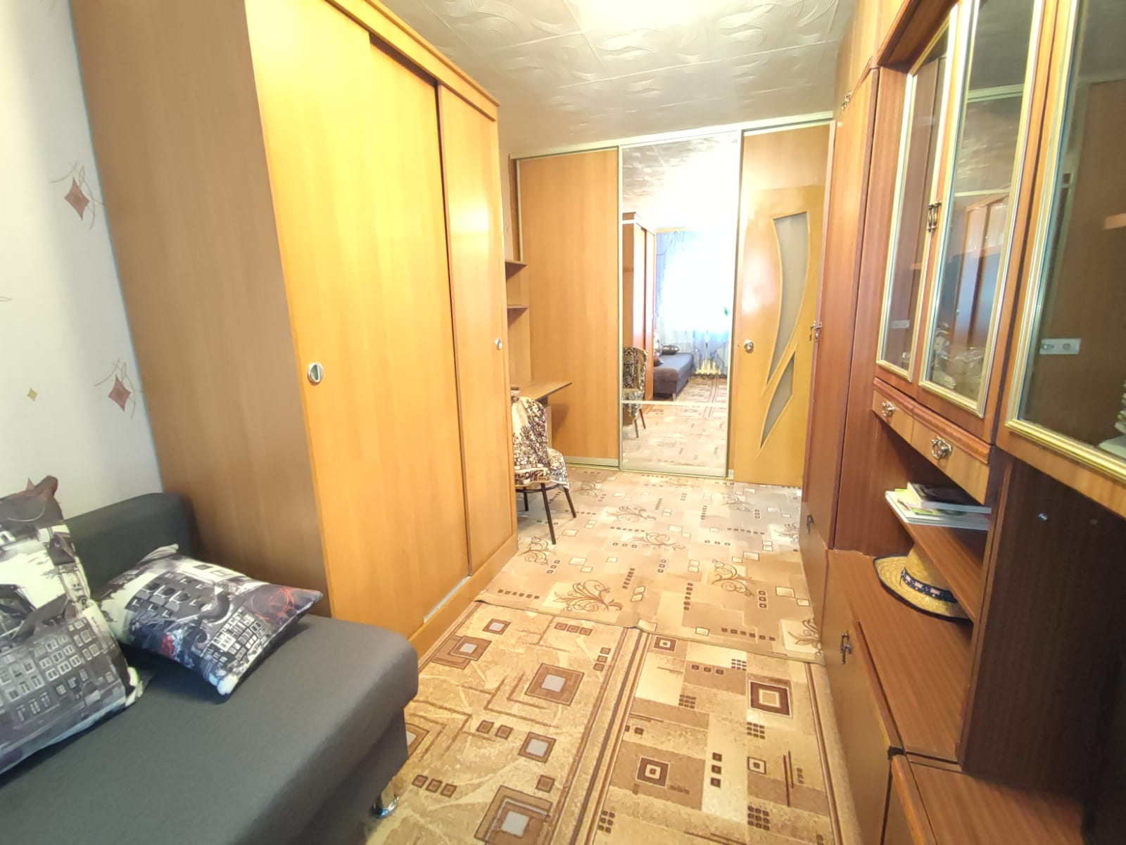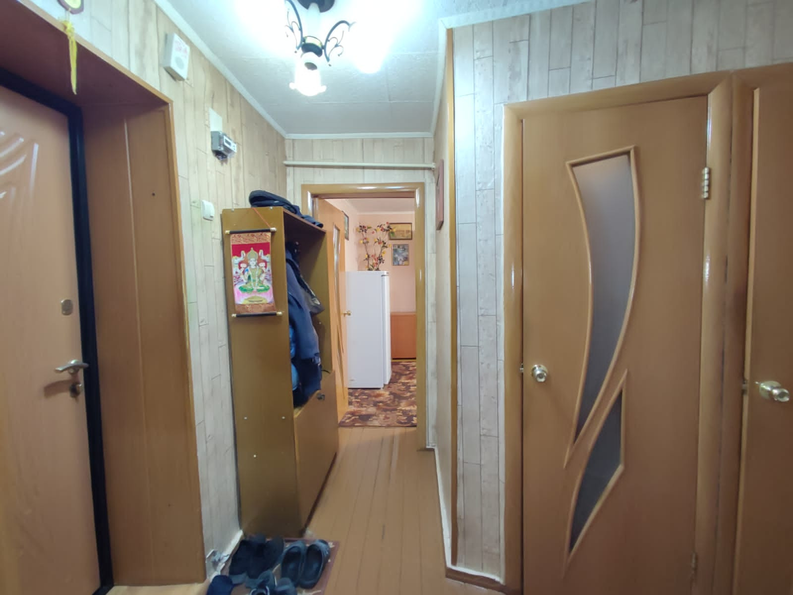 Состояние среднее, чистая и аккуратная квартира. Входная дверь заменена, окна пластик.