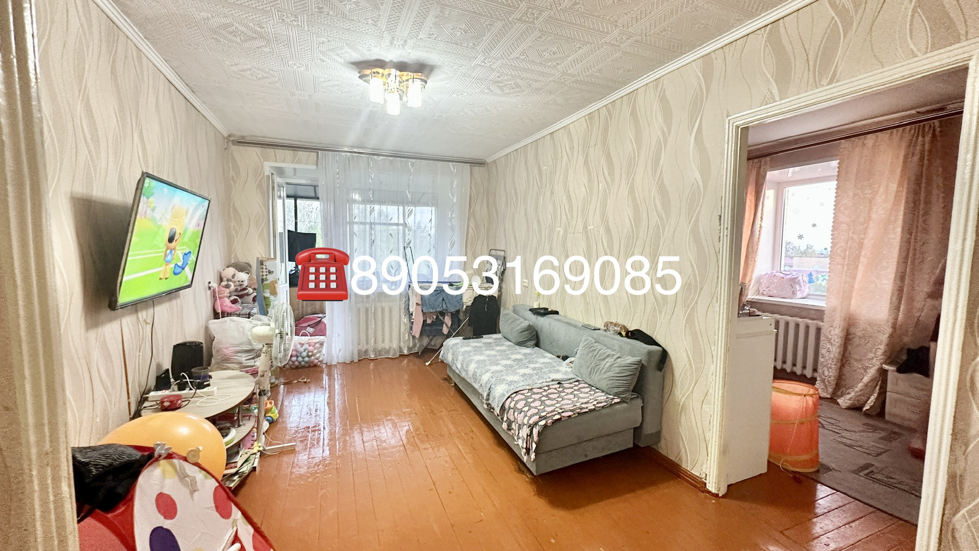 Средний ремонт: установлены пластиковые окна, кафельная плитка в ванной, современная новая входная дверь.
