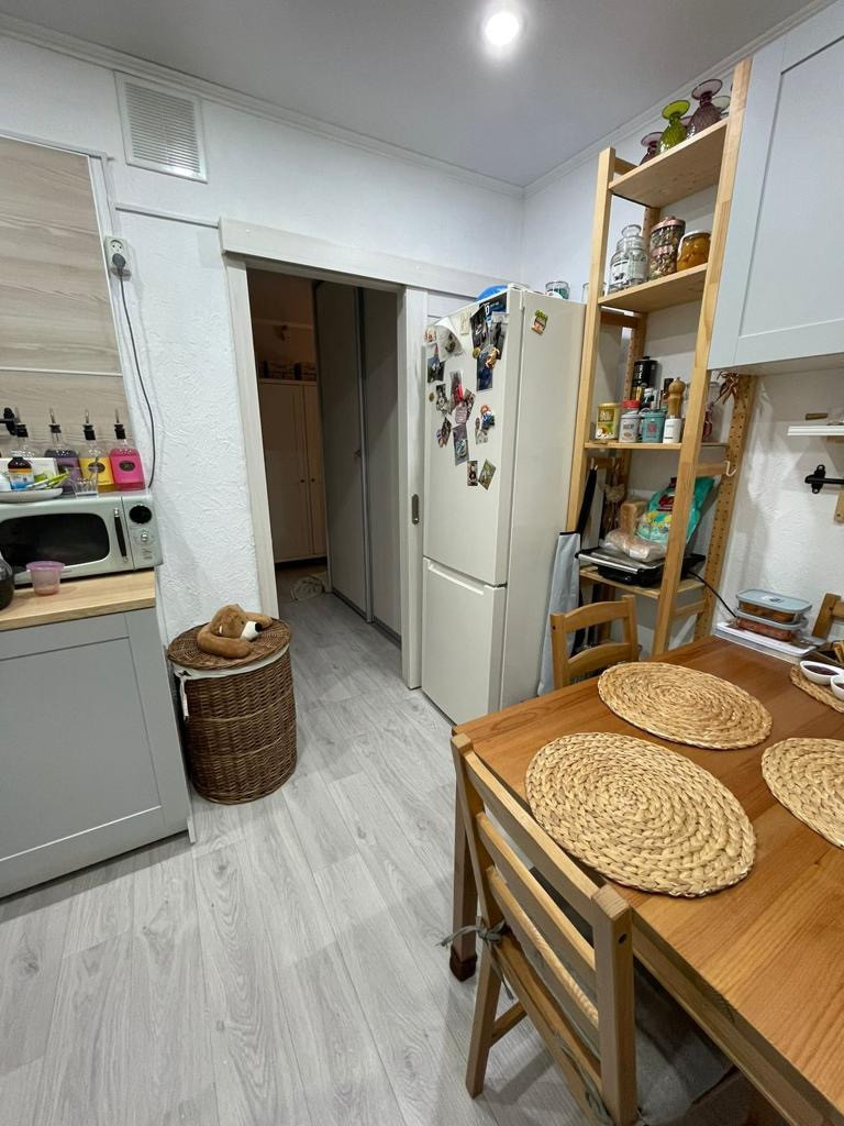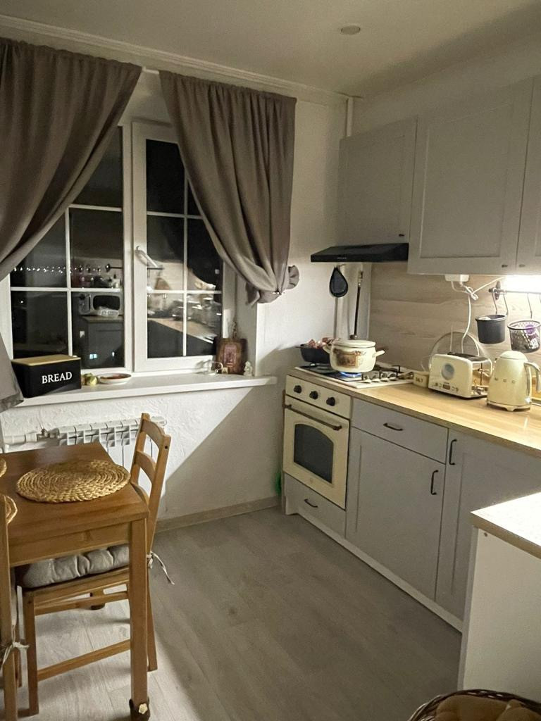 Мебель: кухонный гарнитур, встроенный шкаф-купе в коридоре останется новому хозяину квартиры.