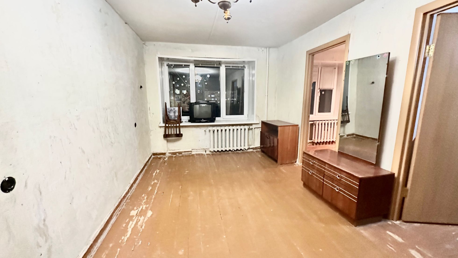 Требуется ремонт: установлены пластиковые окна, в ванной кафельная плитка.