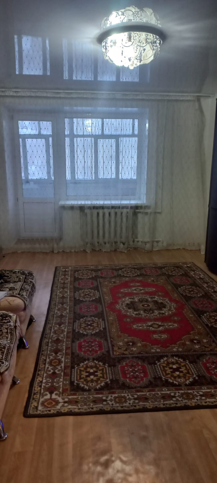 Средний ремонт: установлены качественные пластиковые окна, натяжной потолок, кафельная плитка в ванной.