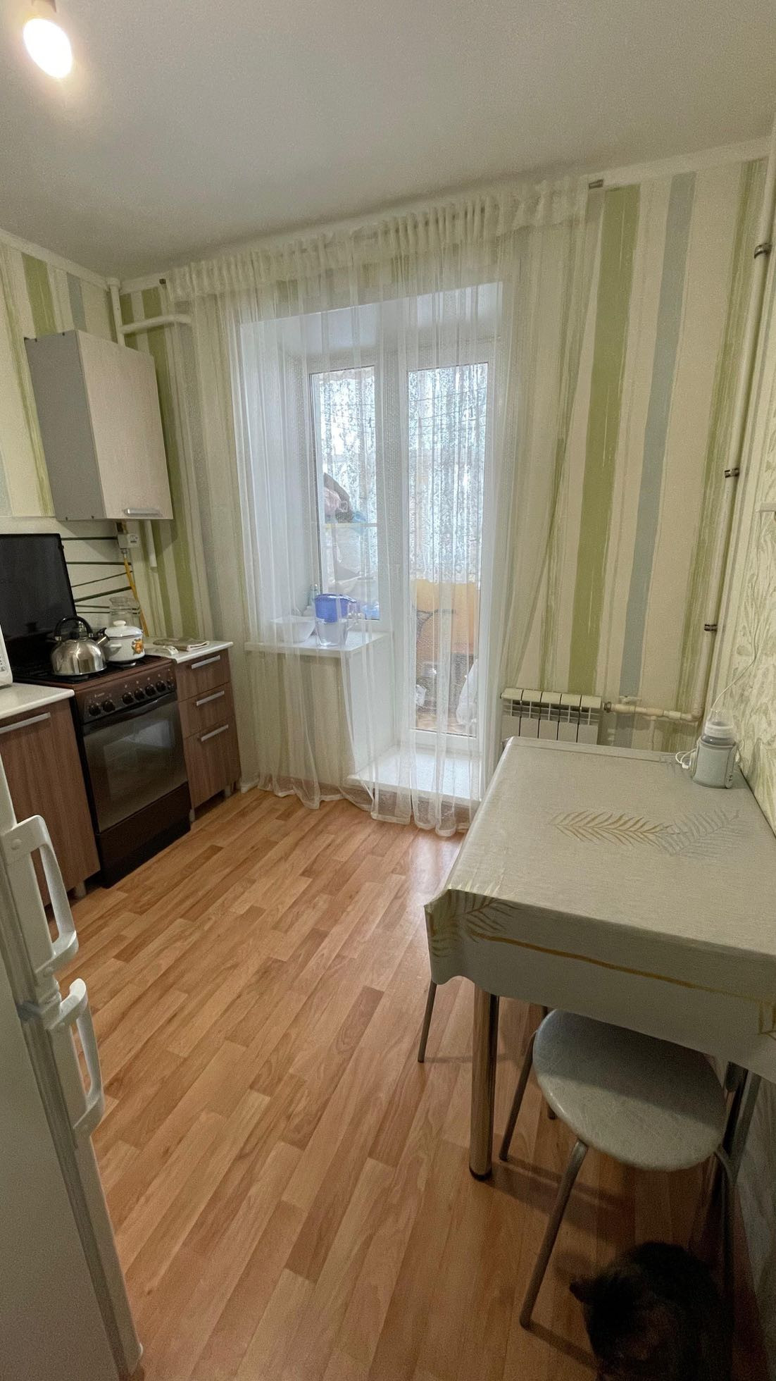 Косметический ремонт: выровнены полы, установлены пластиковые окна, натяжной потолок в зале, кафельная плитка в ванной.