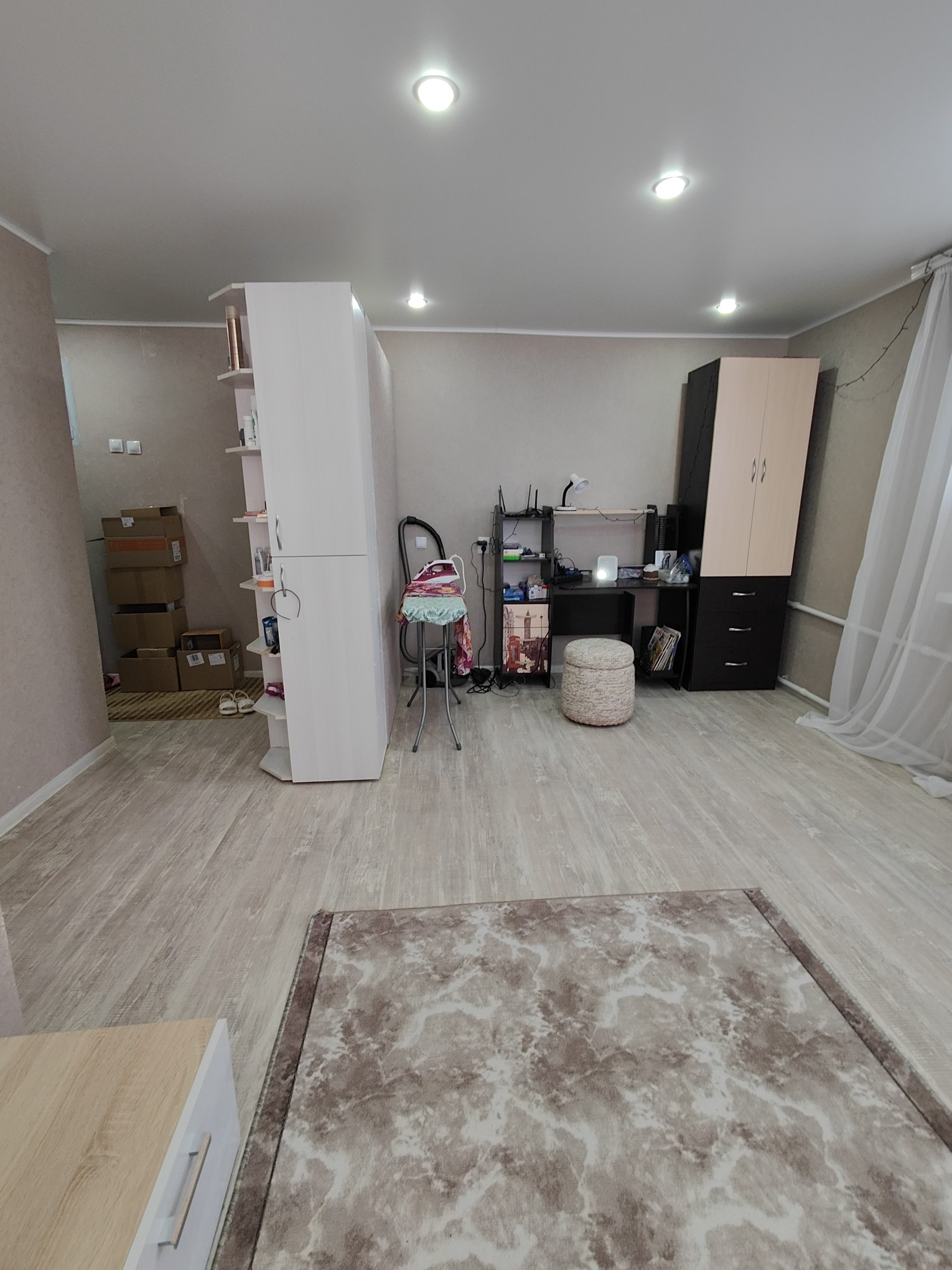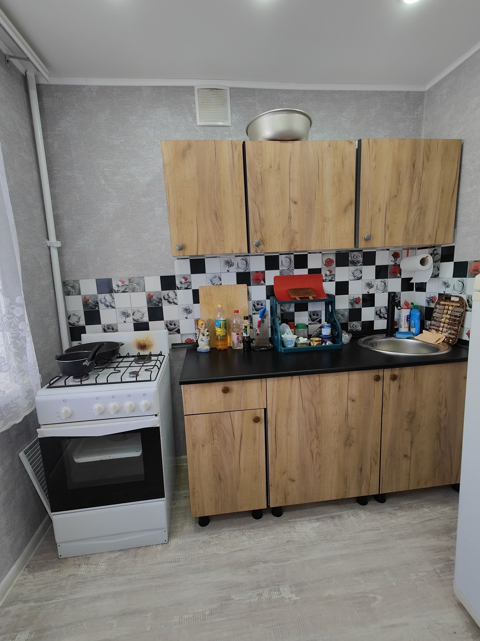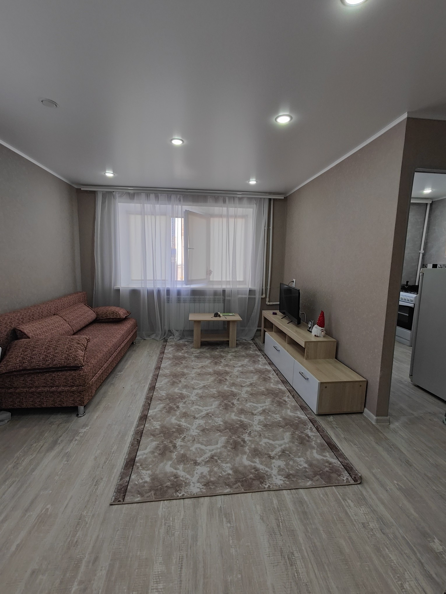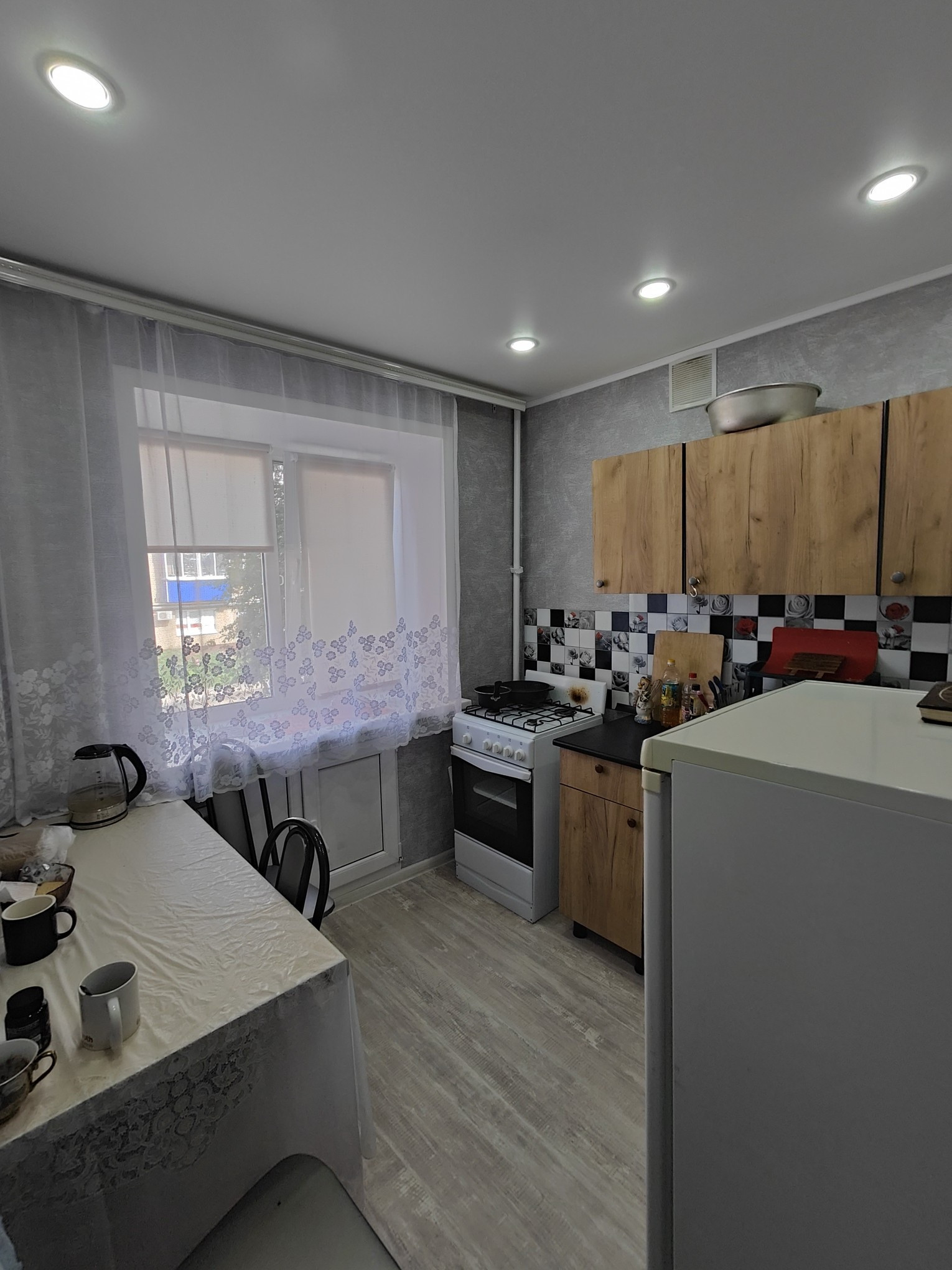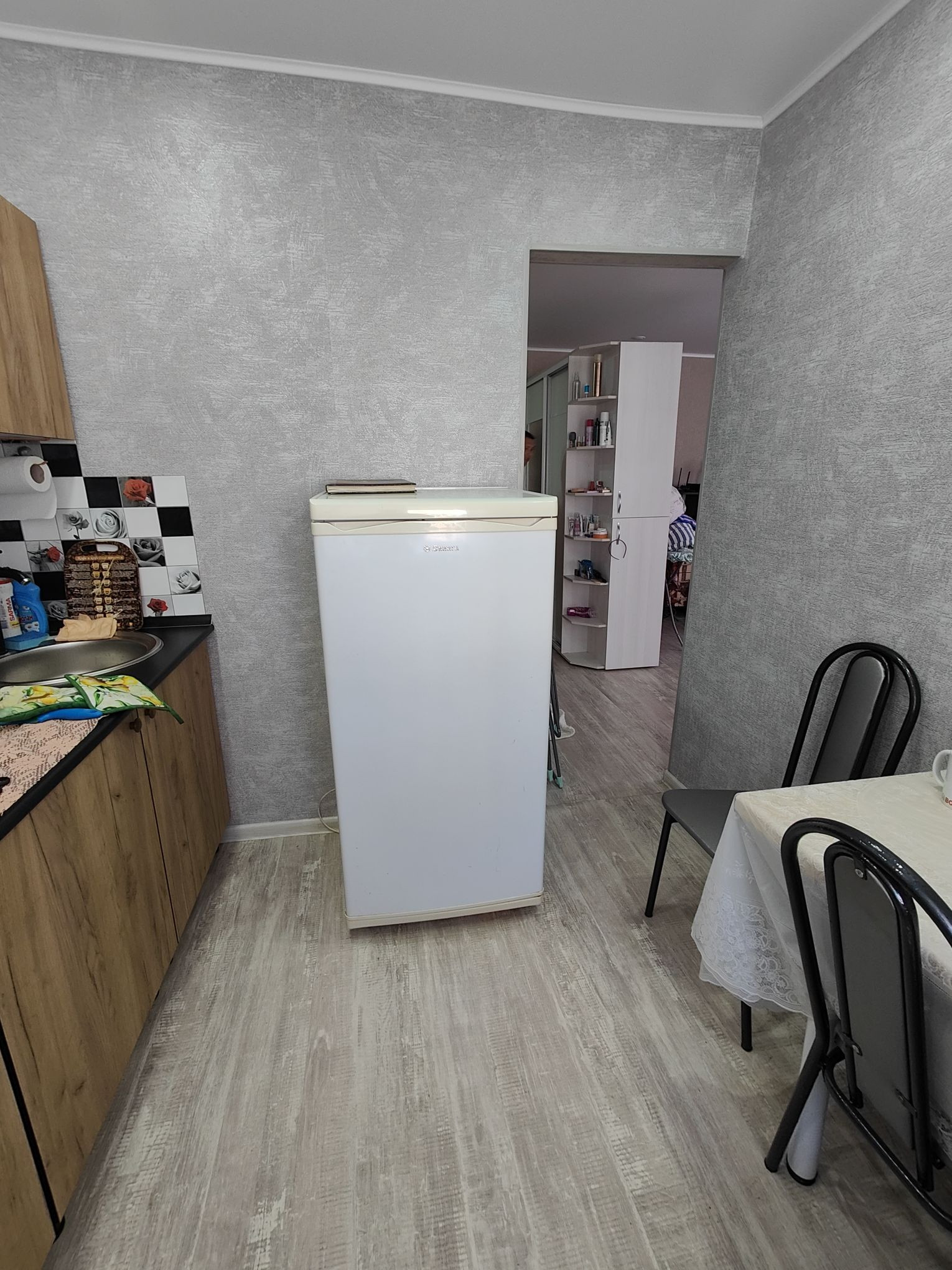 Продам однокомнатную квартиру в отличном состоянии: пластиковые окна, натяжной потолок, на полу линолеум, двери поменяны, в ванной на полу кафель, стены обшиты пластиком. Заезжай и живи.