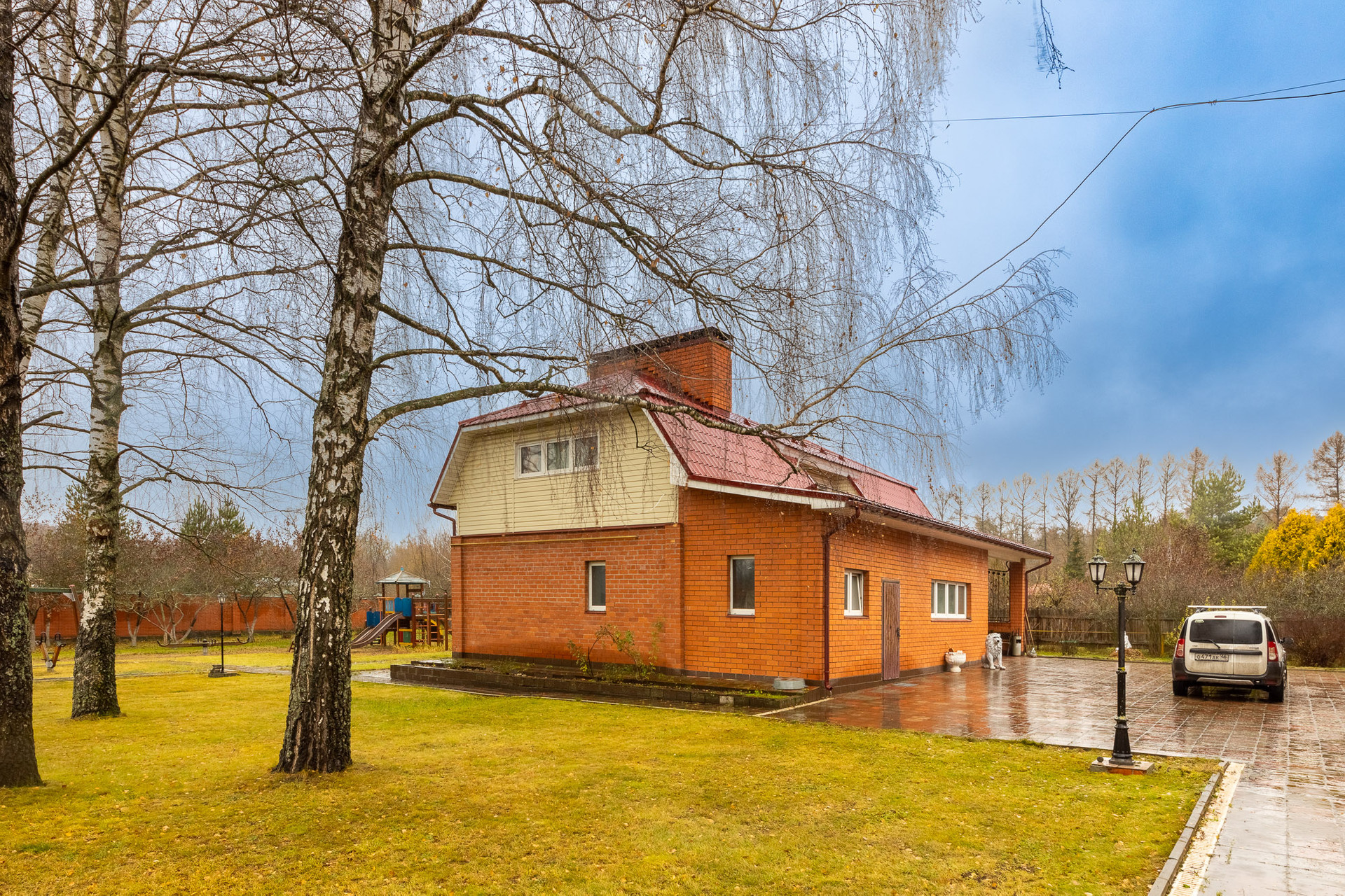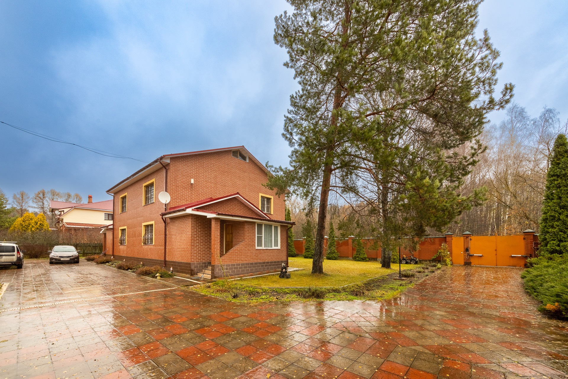 На территории большая парковка замощенная тротуарной плиткой. Ворота на въезде с автоматической системой открытия.
