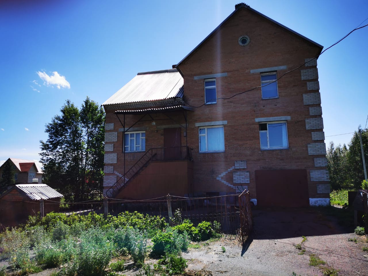 3 этажа, крыша нержавеющая сталь, гараж, баня, бассейн в доме, печное и электрическое отопление, деревянных перекрытий нет, только кирпич, построен на сваях железобетонных, требует косметического ремонта