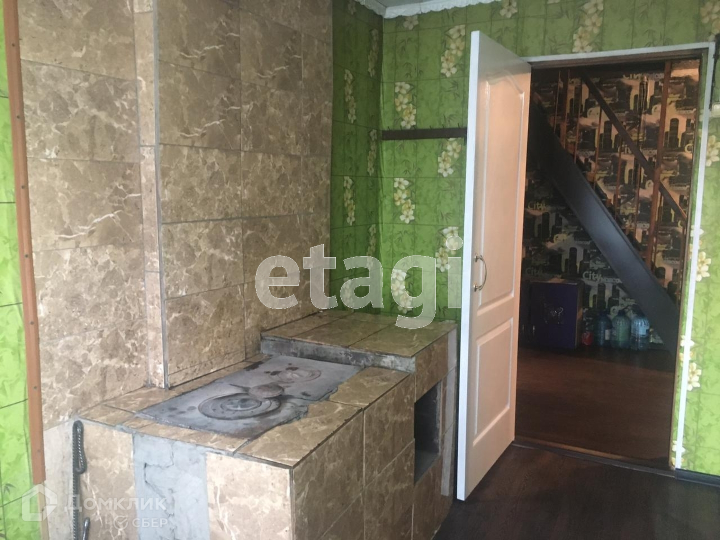 Первый этаж литой, второй дерево. Печное отопление, кабель заведен в дом.