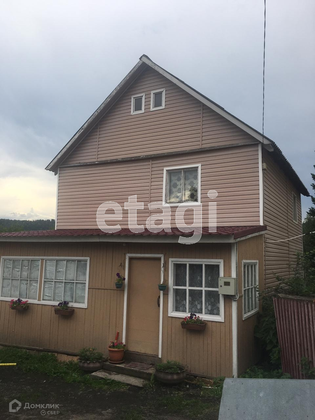 Дом облицован сайдингом.