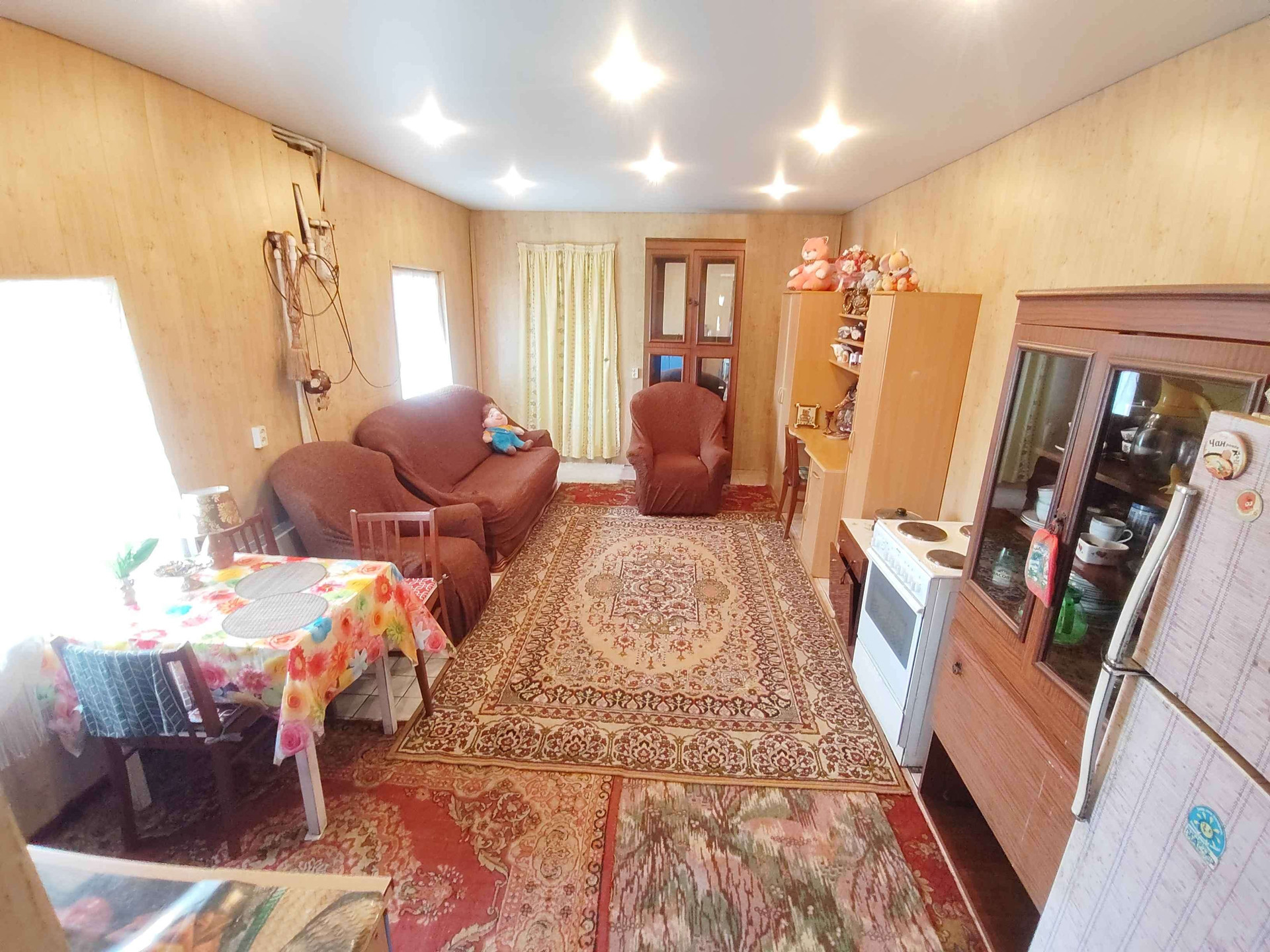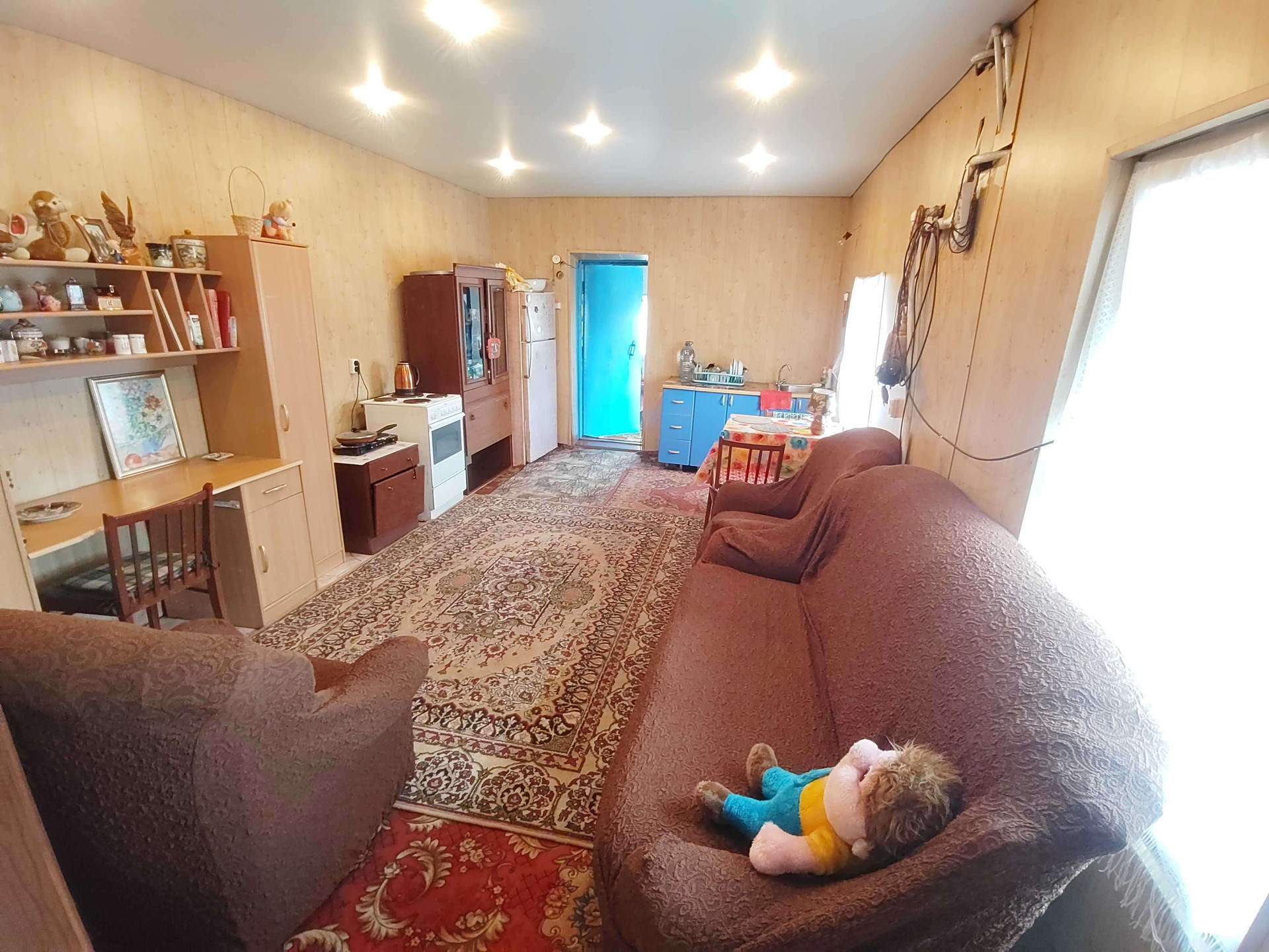 На первом этаже расположена большая кухня-гостинная, сан узел, веранда.