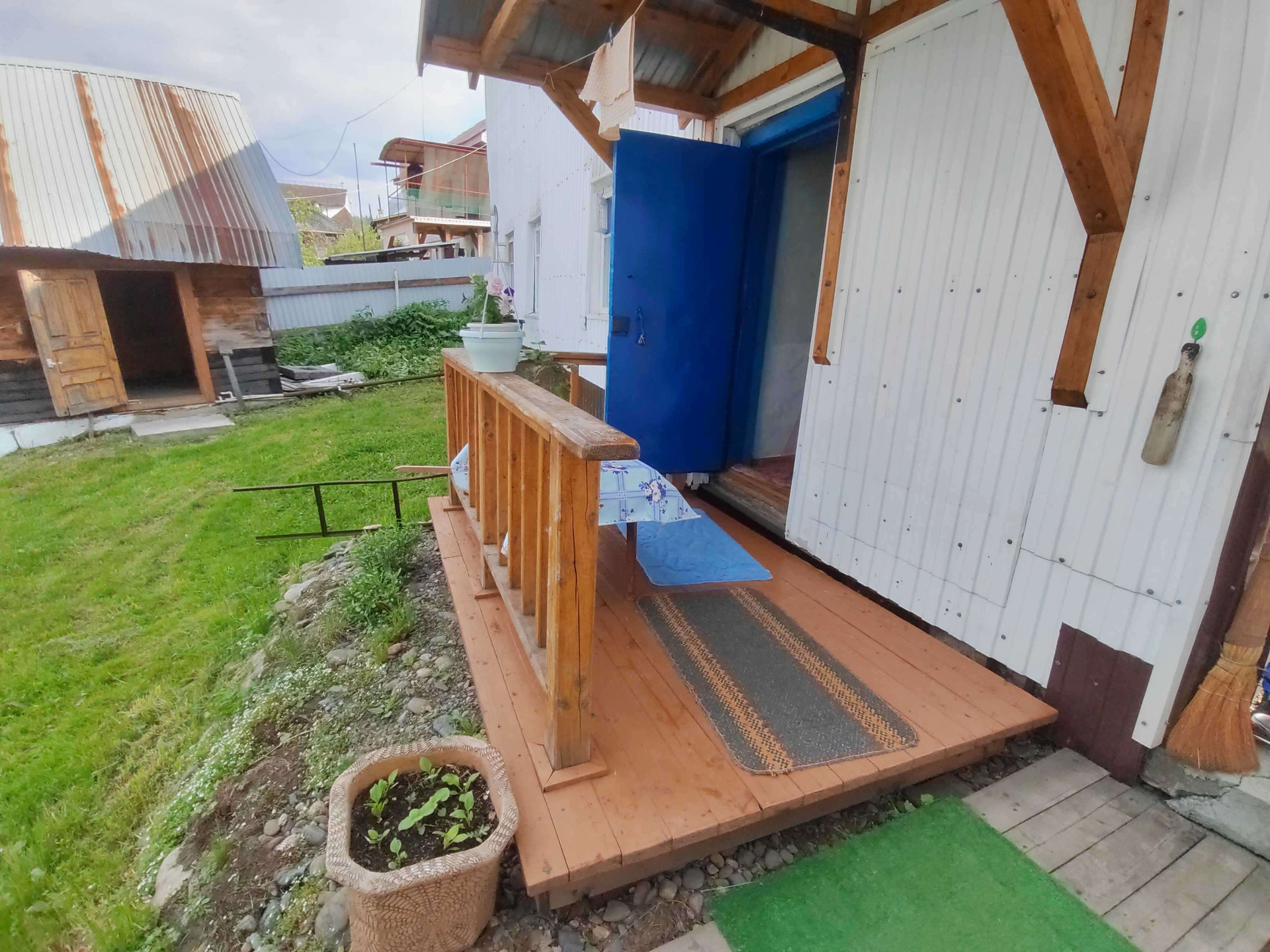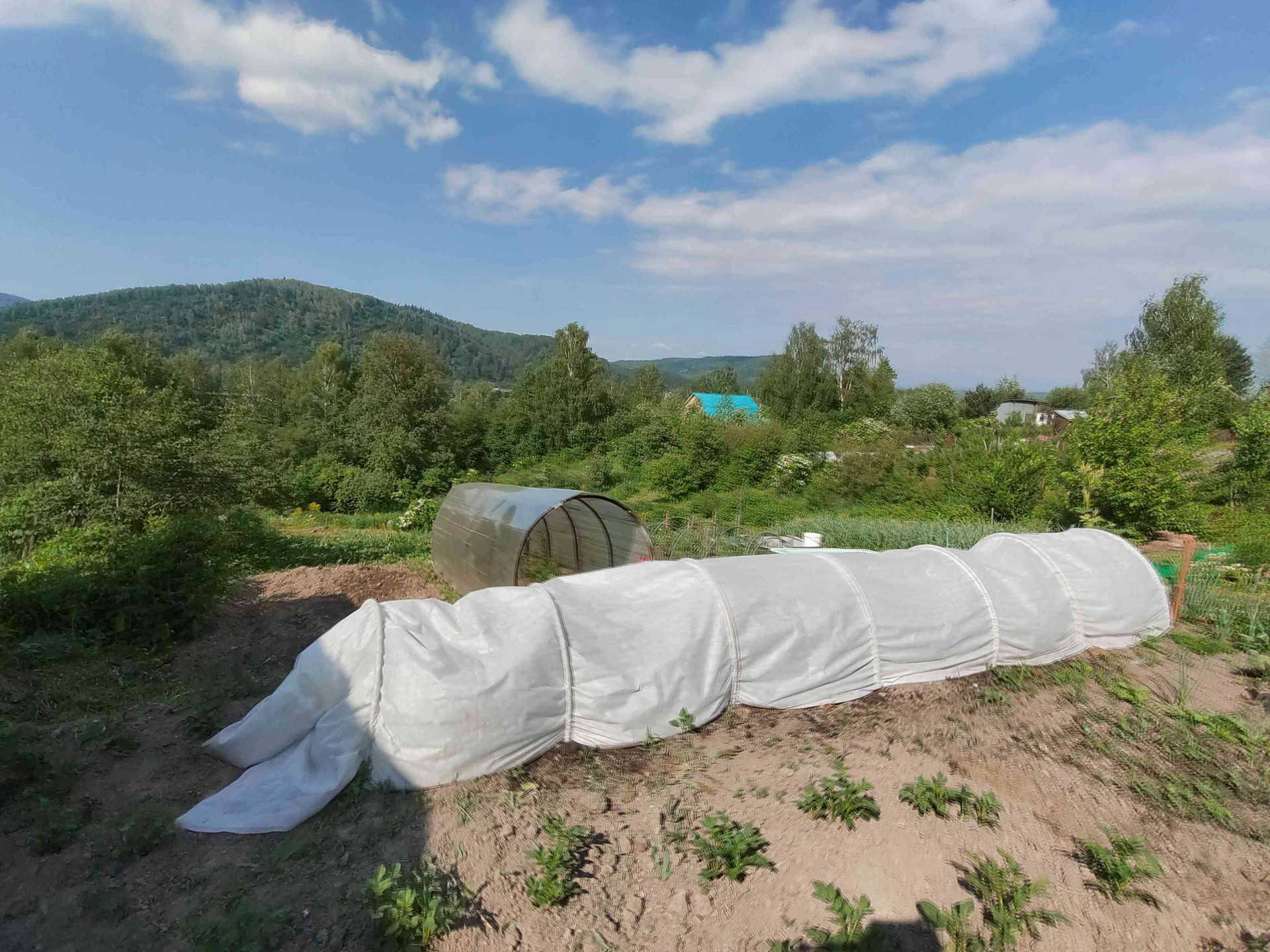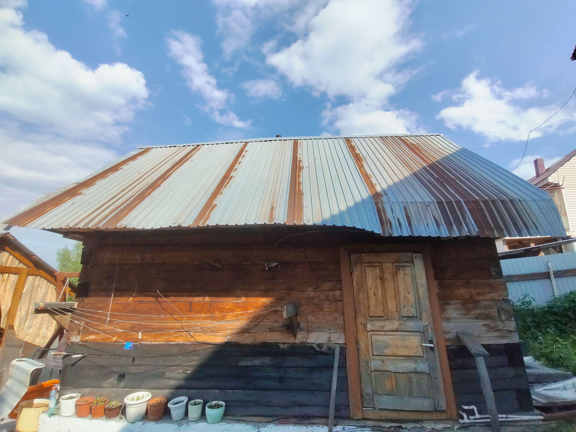 На территории построены баня, беседка, гараж 8*10 под грузовой автомобиль. Теплицы , уличный туалет.