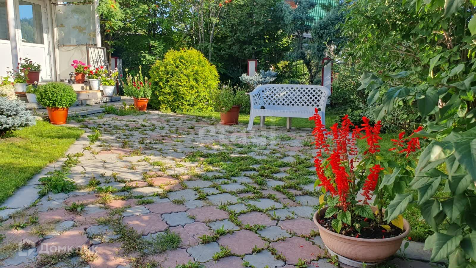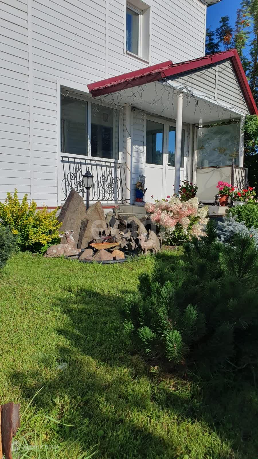 Участок площадью 30 соток оформлен с учетом проекта, он ухожен и украшен сортовыми садовыми насаждениями и клумбами. На участке также есть огород с двумя теплицами.
