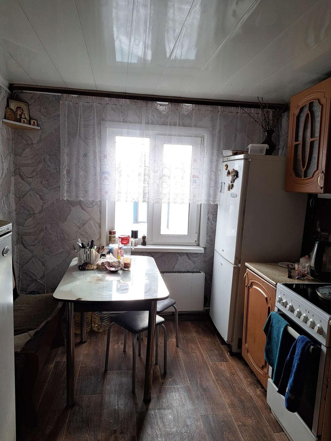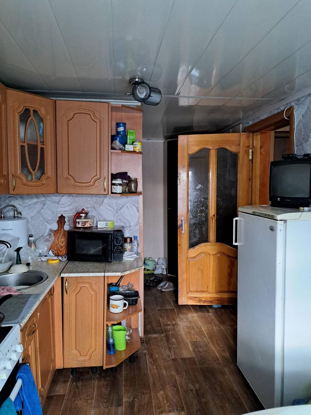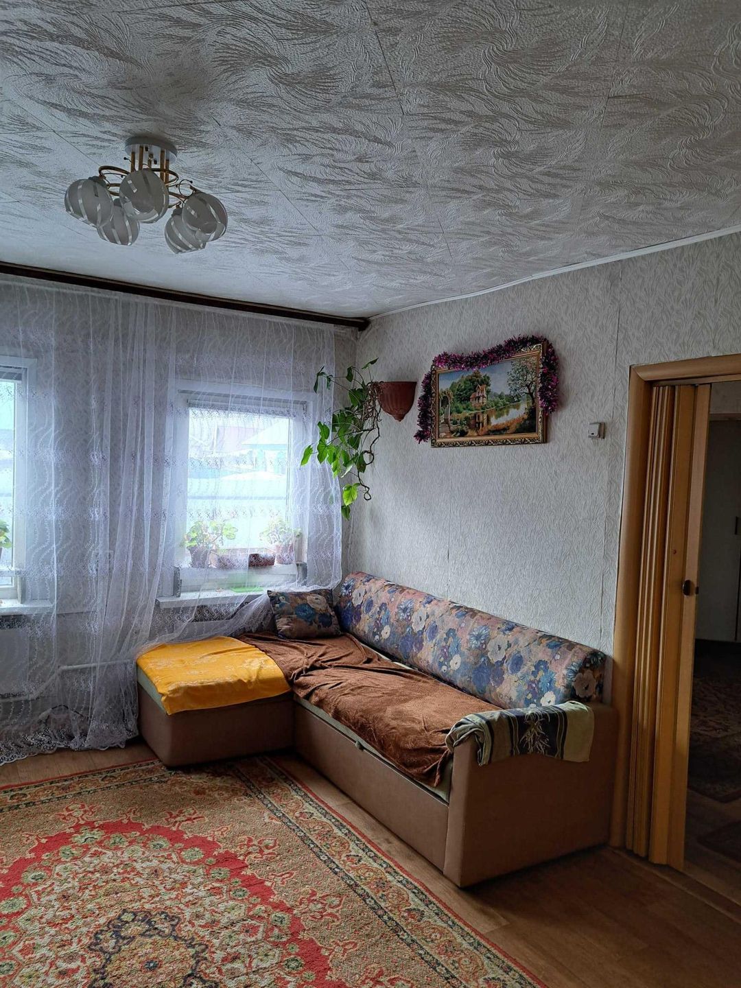 дом, 4 комнаты, санузел, кухня. веранда из бруса, окна пластиковые, водяное отопление, котел длительного горения, ровный участок, баня. Рядом детский сад, школа, магазин, остановка. Торг.