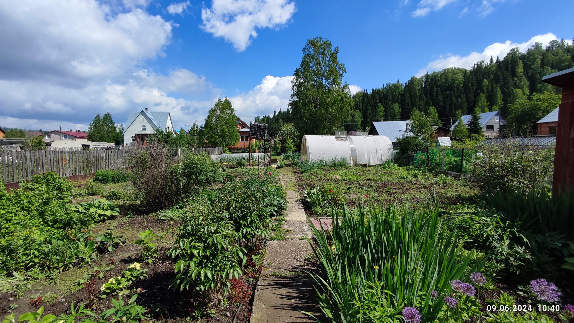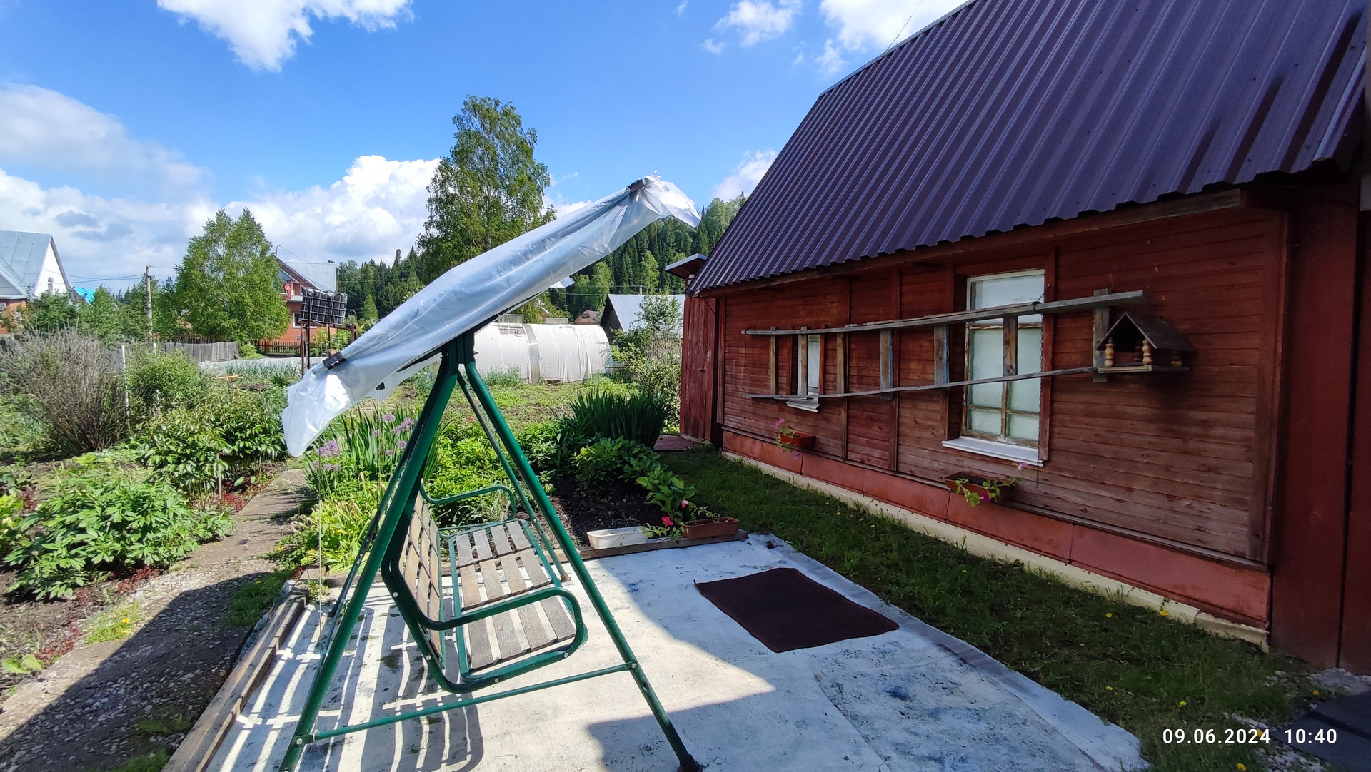 На участке есть большая теплица. Много посадок; виноград, малина, клубника, смородина , крыжовник, цветы.