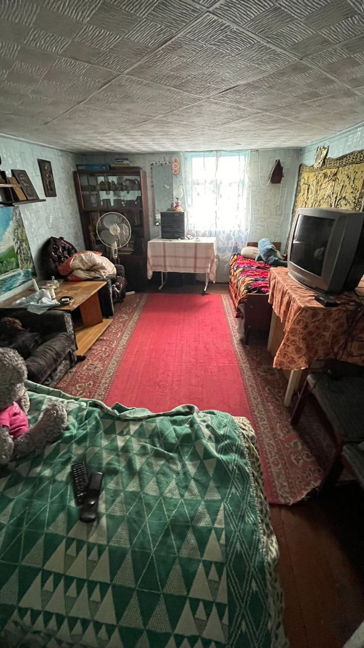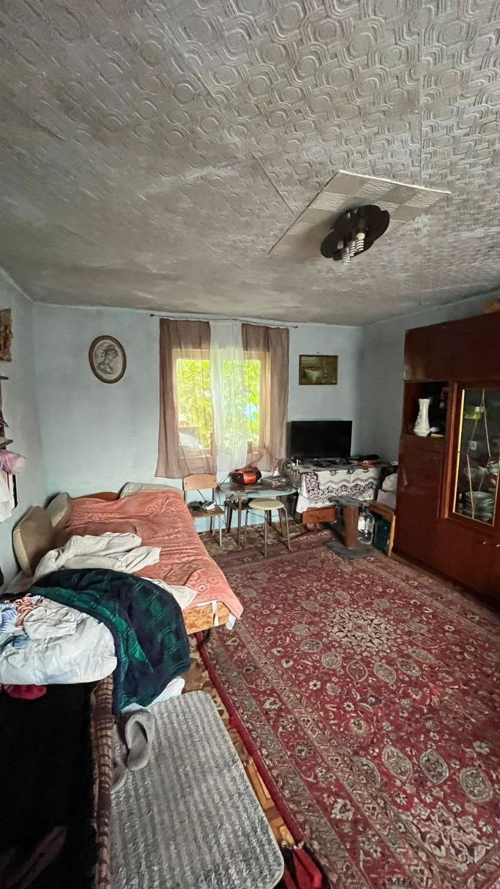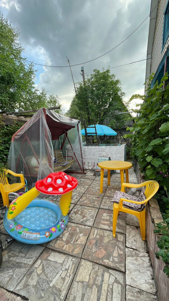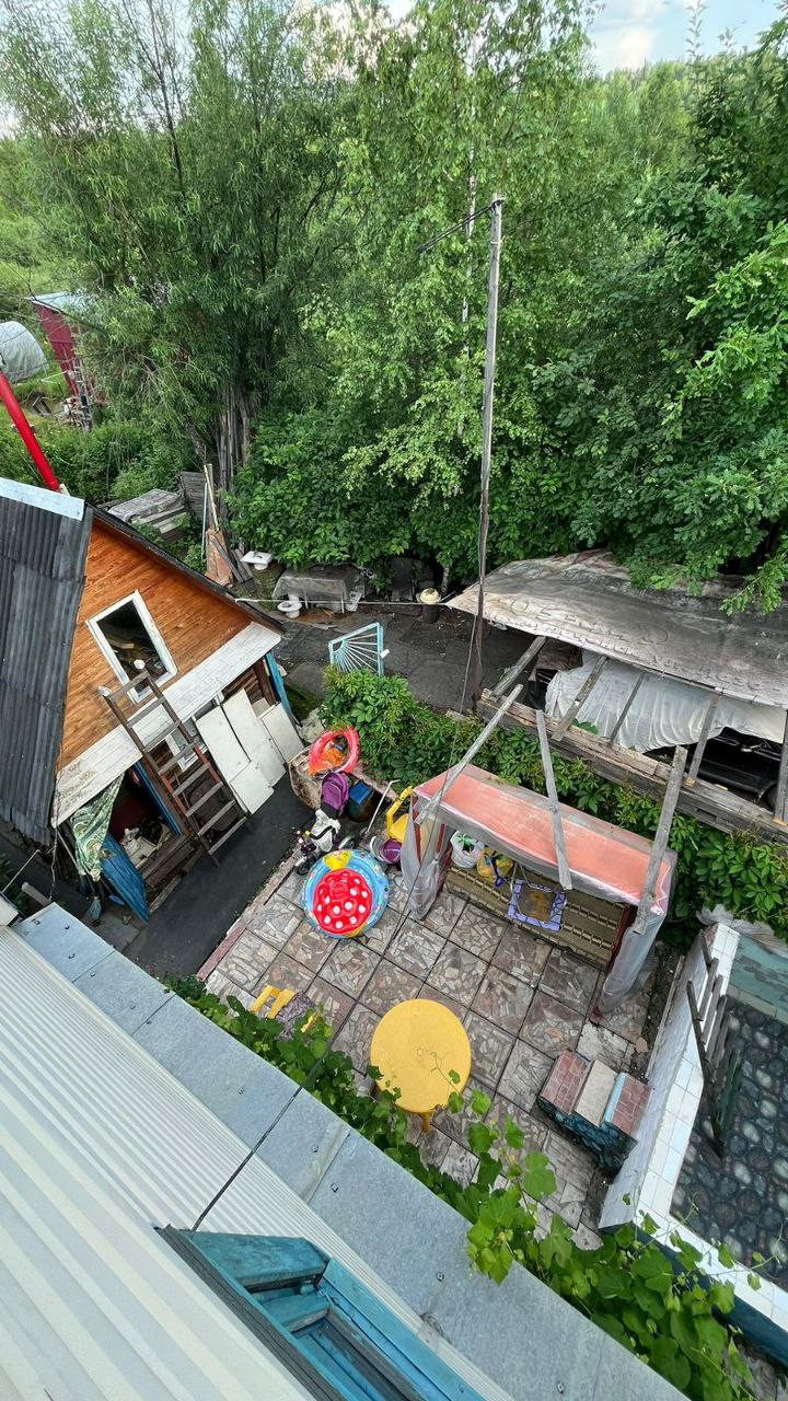 Дом около 90 м2. Первый этаж из каменного блока сделан, летом на первом этаже всегда прохладно, в жаркую погоду спасаемся только там. Пластиковое окно. Второй и третий этажи из дерева.