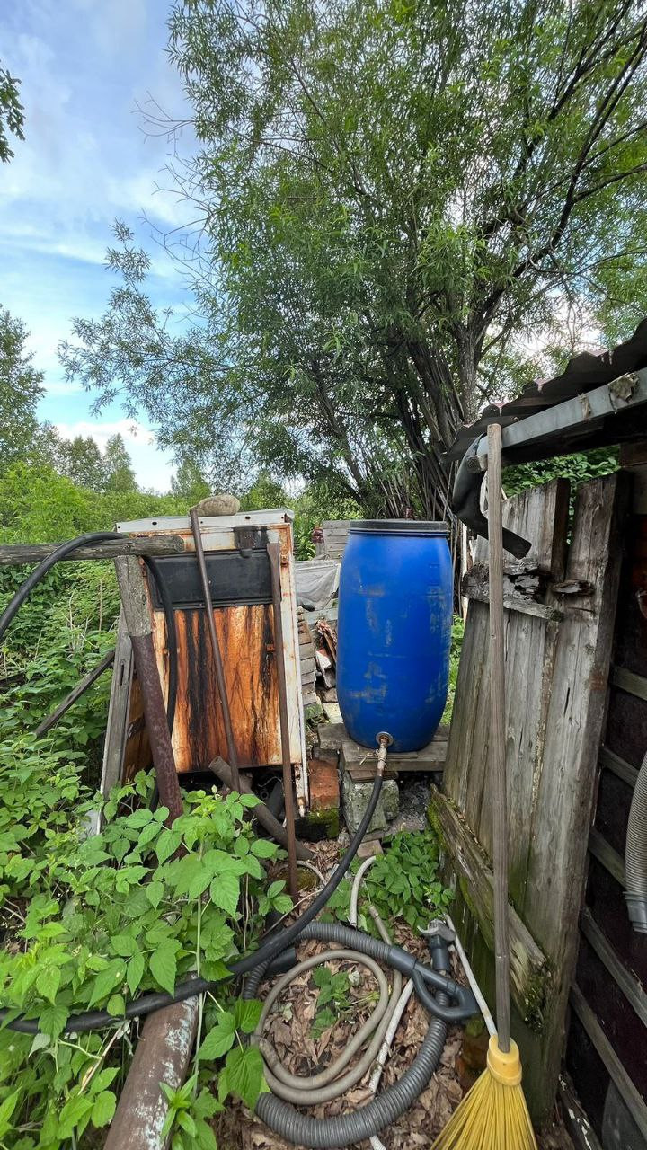 душ на улице хороший, закрытый, теплый, с проведением света