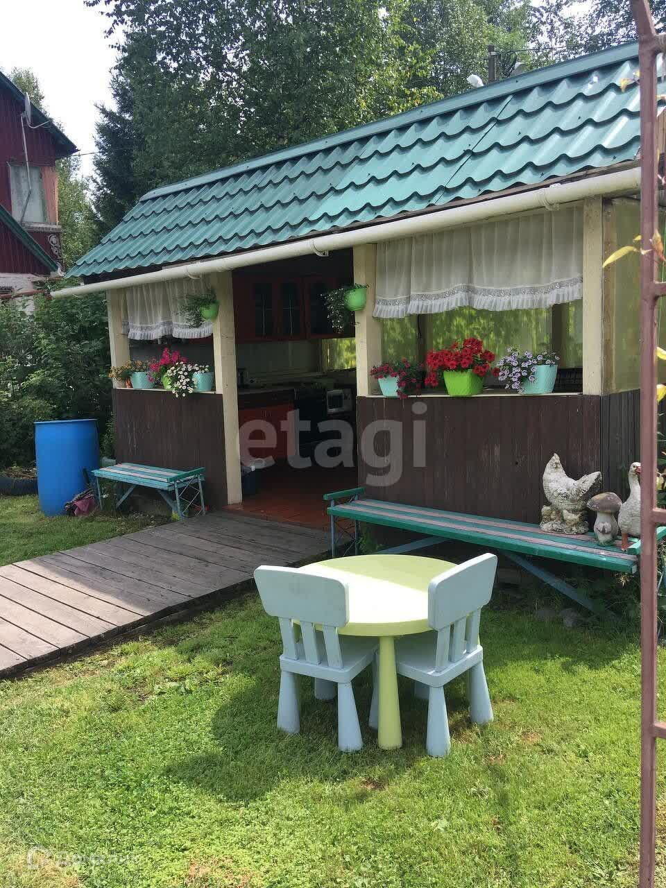 Есть баня, беседка, зона отдыха, газоны, много разной ягоды, цветы.