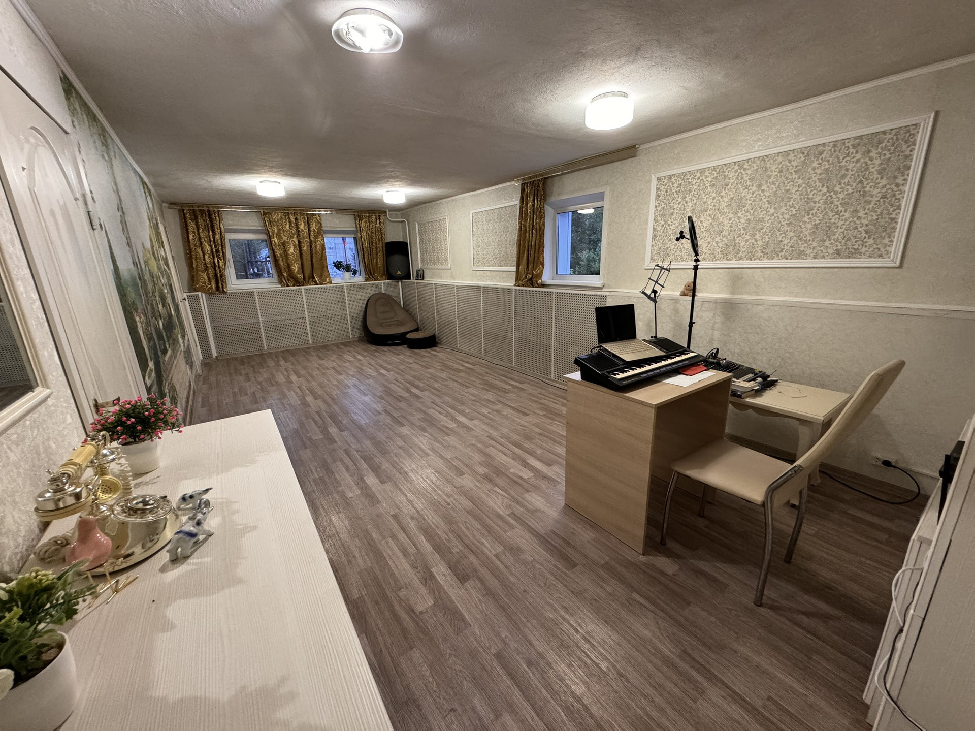 Комнаты все изолированные друг от друга, большая просторная кухня-гостиная, имеются также кладовая для солений, мастерская, 2 сан узла в доме, ванная комната, в перспективе было сделать спорт-зал , комната выделена отдельная .