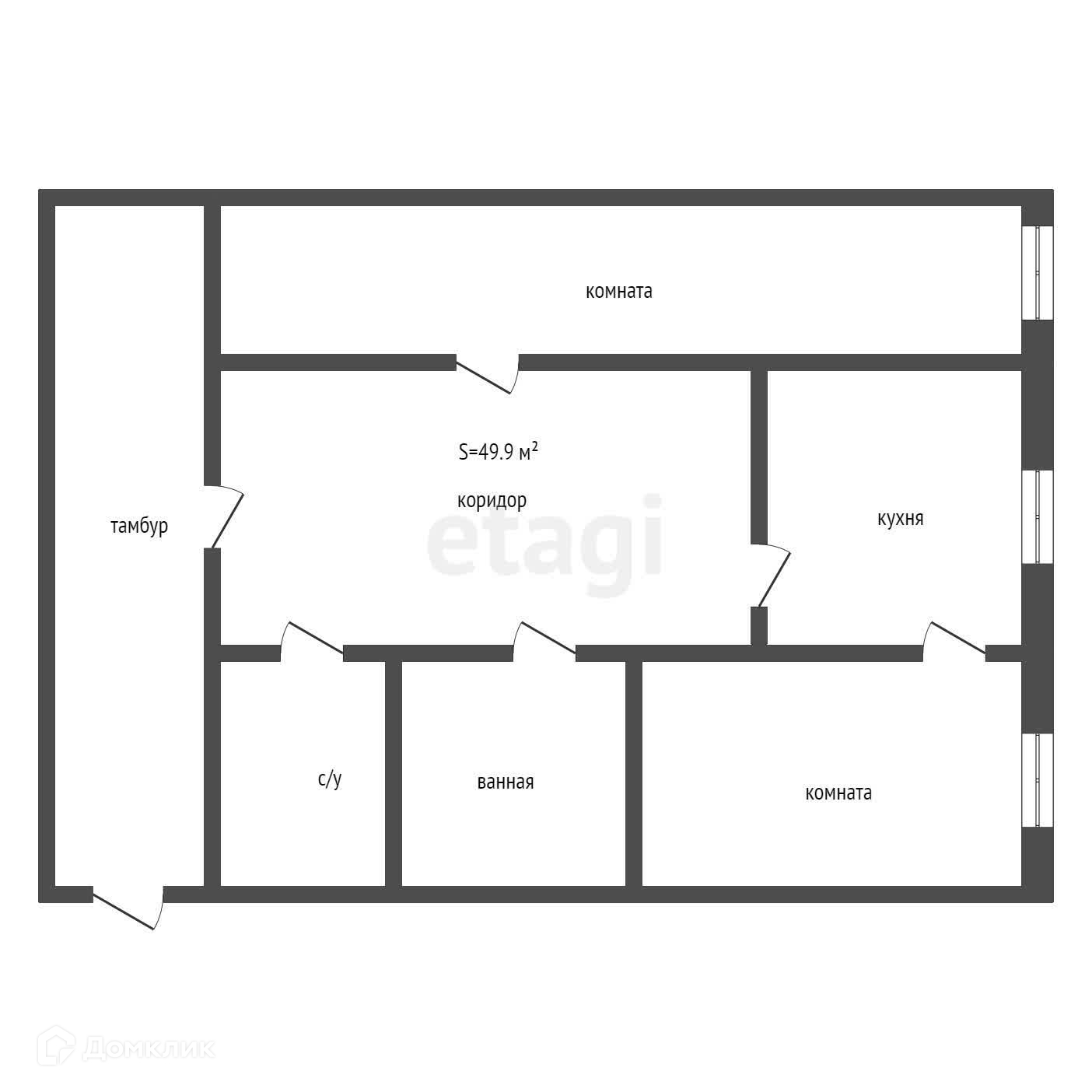 Общая площадь 49.9 м2