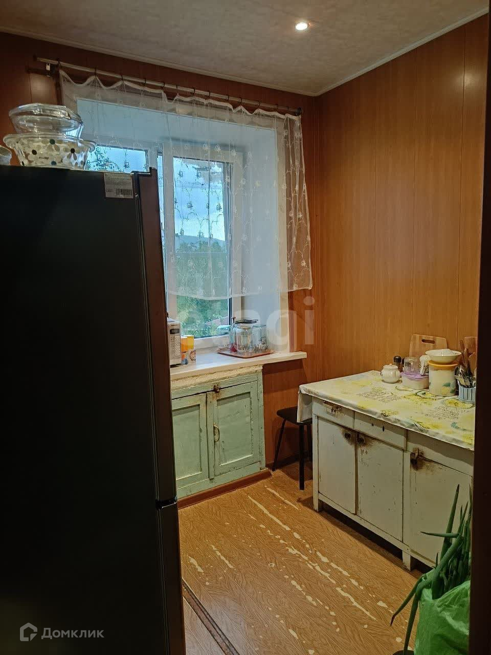 Квартира теплая, светлая, окна пластиковые, ремонт только в ванной, на кухне пластиковые панели на стенах, в зале побеленные стены, в комнате обои, на полу линолеум. Кровля не течет, потолки, стены всё сухое. Планировка вагончик, окна выходят на обе стороны дома, из зала и кухни во двор, из комнаты на площадь и ДК Распадский.