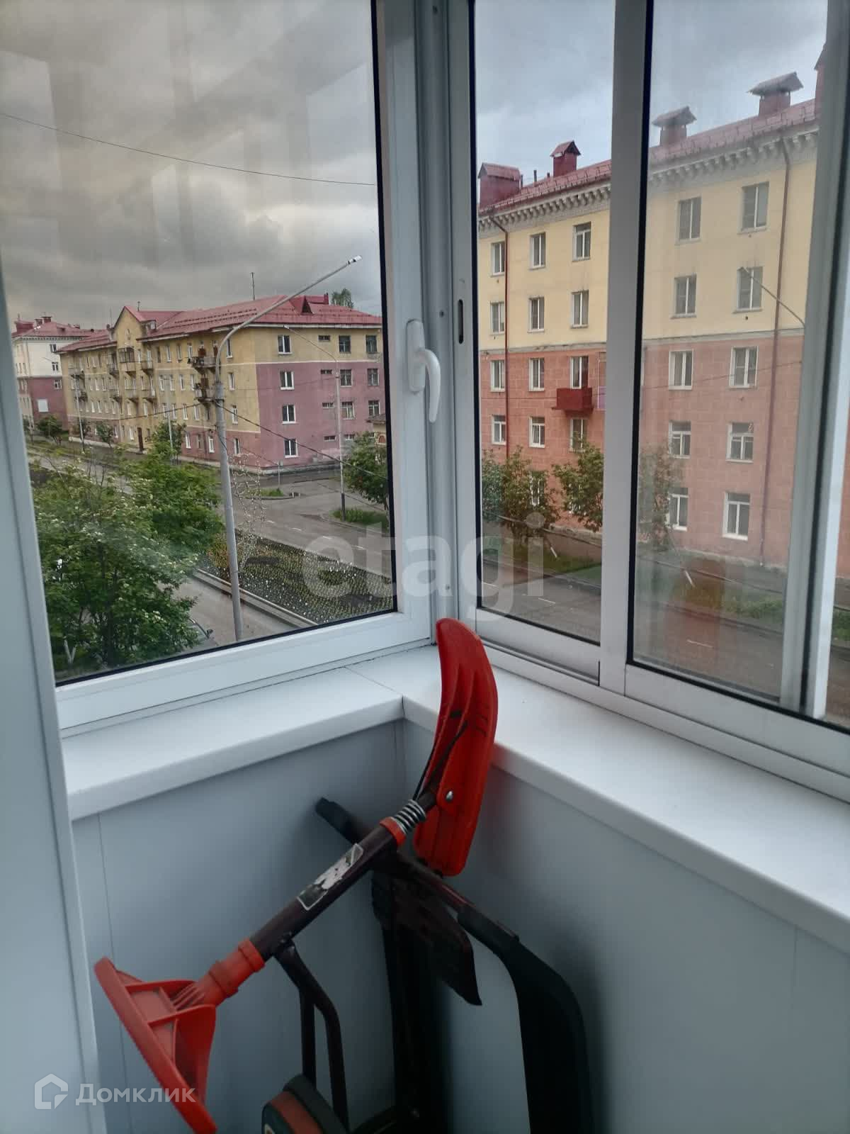 Имеется два застекленных балкона.