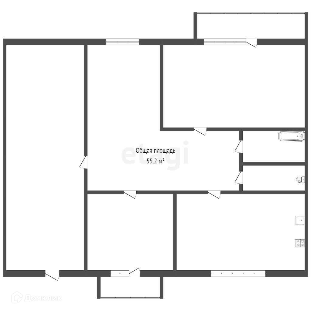 Общая площадь 55.2 м2
