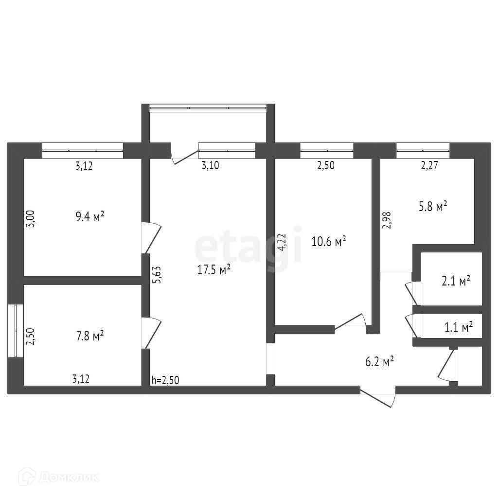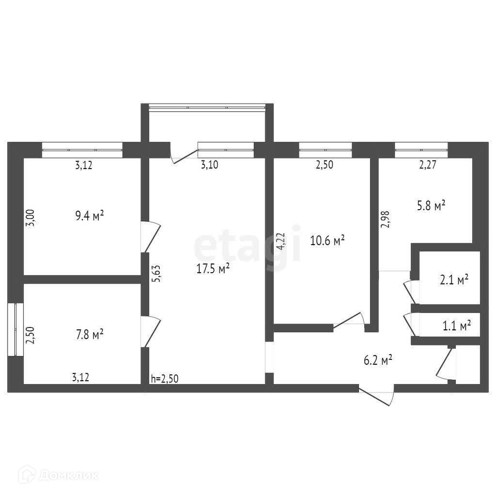 Общая площадь 61.2 м2