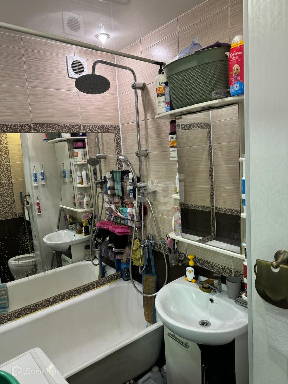 Санузел совмещён, выложен кафелем.