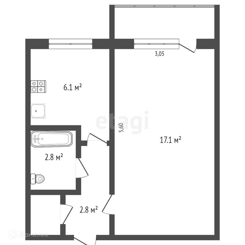 Общая площадь 29.9 м2