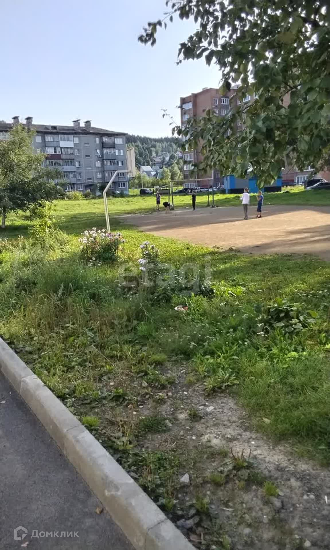 Двор озеленен, закрытый на въезде установлен шлагбаум. Во дворе имеется детская и футбольная площадки.
