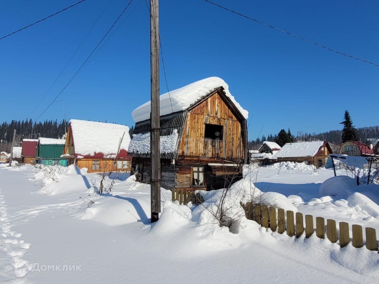 Зимой улицы чистятся от снега, подъехать можно всегда. На участке стоит дом из бруса. Приложив руки, его можно использовать как временный домик до постройки нового, а потом, при желании, разобрать.