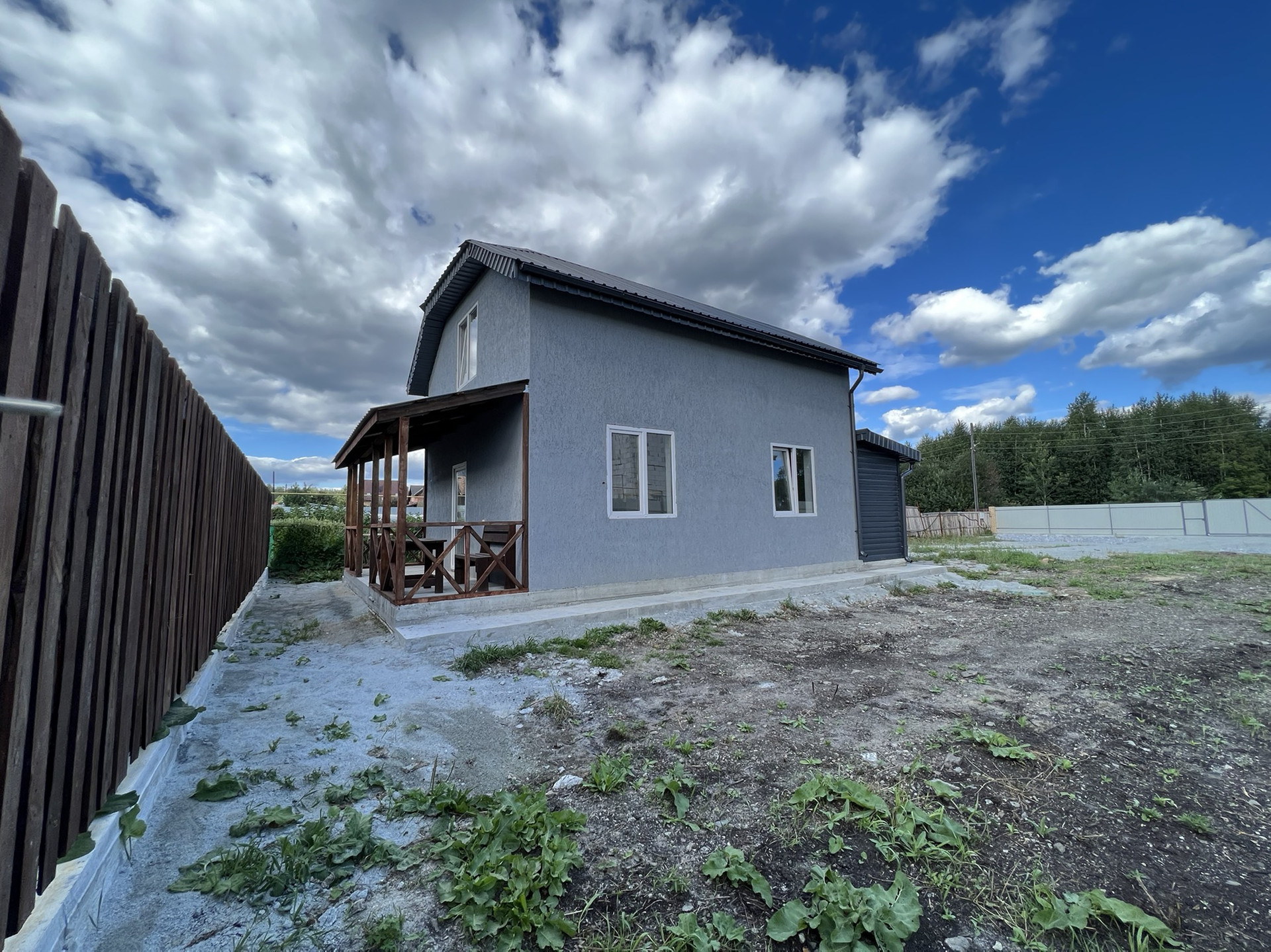 ☀️ Огорожен забором из профнастила, с фасада крашеный, откатанные ворота, калитка.
