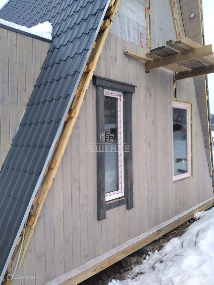 Наружняя отделка - имитация бруса. Кровля - металлочерепица. Пол под стяжку.