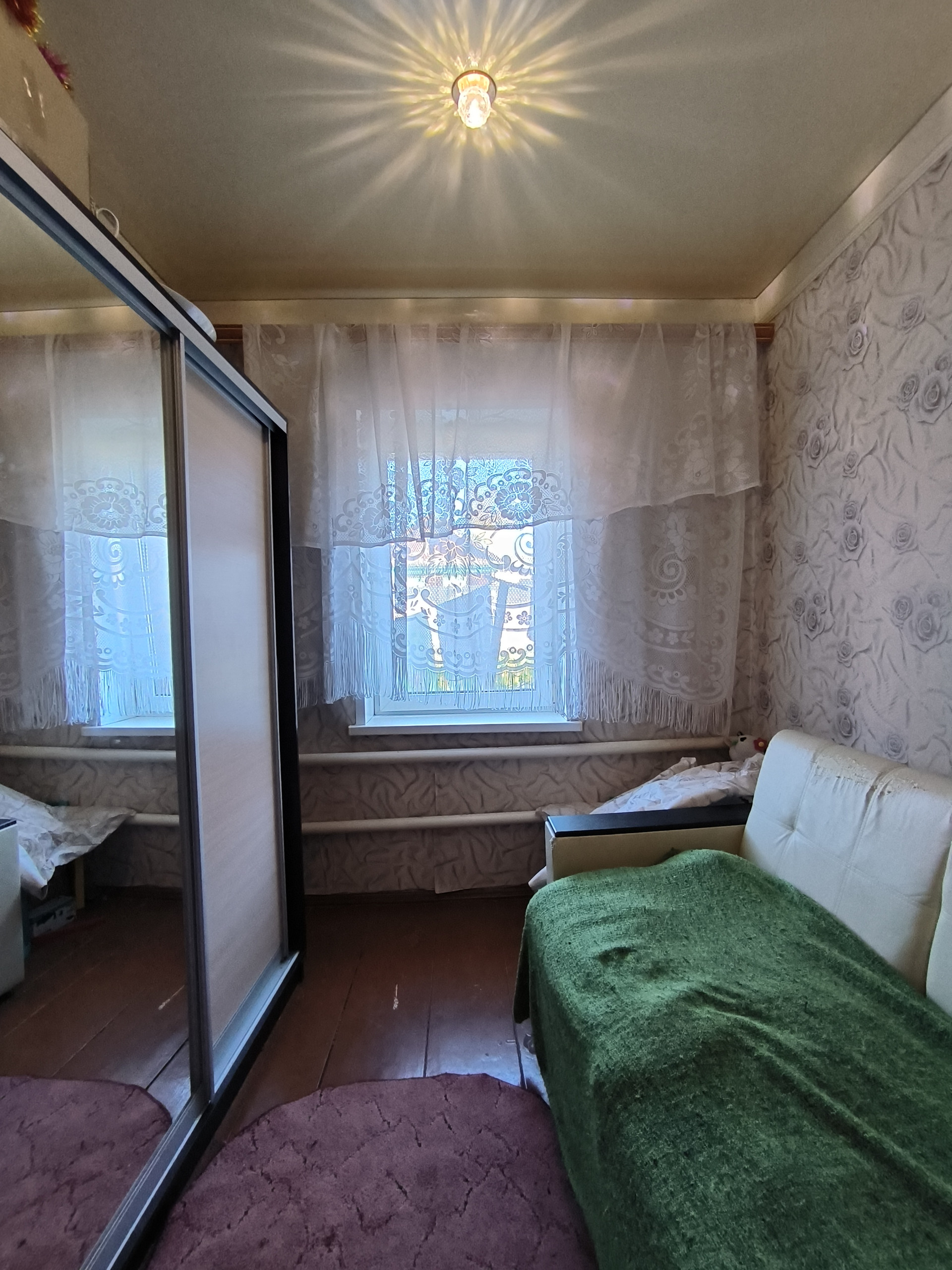 В дом заведены все коммуникации: газовое отопление, центральное водоснабжение, септик. В доме три комнаты, кухня и совмещенный санузел. Во всех комнатах сделан ремонт: на полу постелен ковролин, на стенах поклеены обои, по всему дому натяжные потолки. В санузле установлена душевая кабина. При продаже остается кухонный гарнитур и газовая плита.